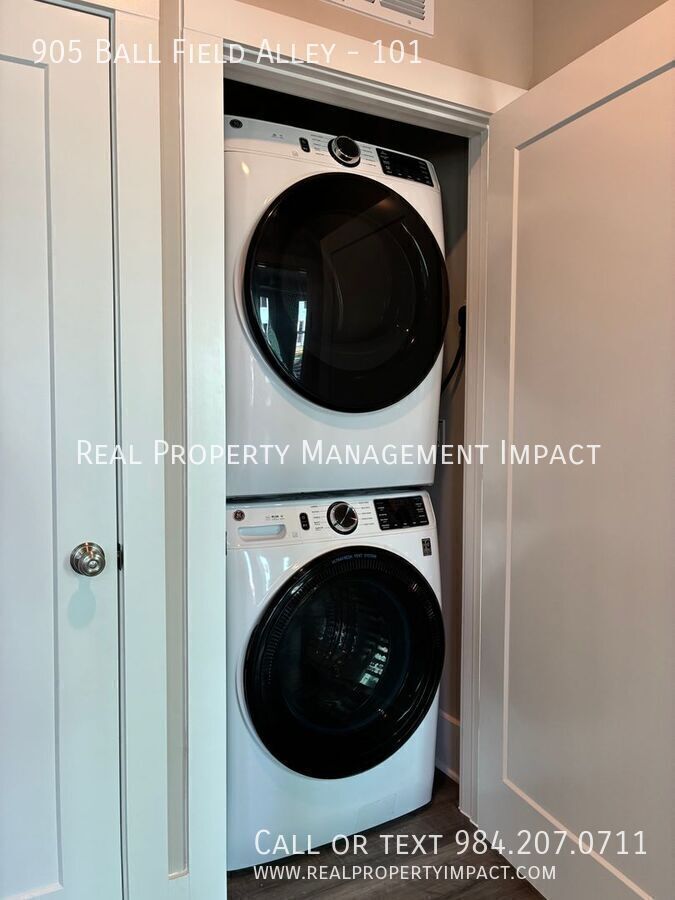 Discover modern living in the heart of downtown Cary at Soca56, a brand-new boutique community designed for convenience and style. This stunning two-level condo townhome offers 2 bedrooms, 2.5 bathrooms, and a versatile flex space with 2 balcony style decks, creating the perfect blend of comfort, functionality, and contemporary design. Located just steps from downtown Cary’s vibrant scene, you’ll enjoy easy access to local shops, restaurants, cafés, Cary Park, and the Cary Regional Library, making everyday living both effortless and exciting. Step inside to a light-filled open floor plan enhanced by oversized windows that flood the home with natural light. The main living area flows seamlessly into a beautifully designed kitchen—ideal for both daily living and entertaining. Culinary enthusiasts will love the white shaker cabinetry, sleek quartz countertops, decorative tile backsplash, and stainless-steel appliances. A spacious center island with decorative pendant lighting provides the perfect gathering space for friends and family. Upstairs, the primary suite offers a peaceful retreat, complete with double walk-in closets providing abundant storage. The second bedroom is generously sized and paired with its own full bath, making it ideal for guests, family, or a home office setup. A convenient second-floor laundry area with stackable washer and dryer adds practicality to everyday routines. Additional highlights include an attached one-car garage with a private driveway for extra parking, as well as thoughtfully designed living spaces that balance modern elegance with everyday comfort. The flexible bonus space opens to a private deck, offering a perfect spot for morning coffee, relaxing evenings, or working from home in the fresh air. With its prime downtown location, stylish finishes, and smart layout, this beautiful Cary condo townhome delivers the best of low-maintenance living in one of the Triangle’s most desirable communities. It’s the perfect place to begin your next chapter. Application Criteria • Credit Score – Min 600 (soft pull) • Income (monthly) –3X Monthly Rent • Everyone over 18 must apply ($55 application fee applies to all applicants) • No Evictions • Criminal Background Screened • If pets are allowed – separate pet screening is required. Fees applied once approved. • All information provided on the application is screened and verified. • Approval timeline varies based on the verification process. Average = 48 hours. AVOID RENTAL SCAMS: Real Property Management Impact is a licensed Real Estate Agency that exclusively markets and represents this listing. We do not advertise on Craigslist or Personal FB Pages. We would never ask you to wire money, request funds through a payment app for initial rent, deposits, or take the key after your showing to move-in. Townhouse