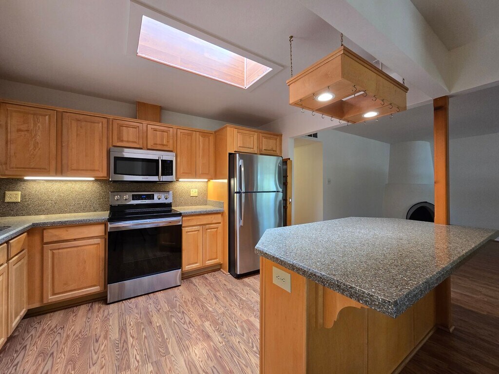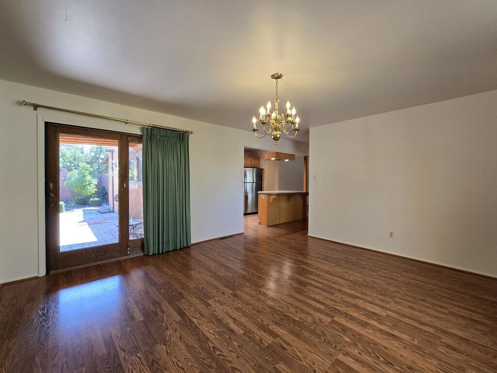 Discover the tranquility of this private 1,720 sq. ft. Southwest-style home, offering 3 bedrooms and 2 full bathrooms in a truly serene setting. This is a slice of semi-rural living in town, in a desirable neighborhood that's conveniently located just minutes from city amenities. The warm stucco exterior gives way to a spacious and comfortable interior defined by an open-concept layout. The main living areas feature beautiful wood-look flooring and are anchored by a cozy, traditional kiva-style fireplace. The modern kitchen invites cooking and entertaining, and boasts stainless steel appliances, handsome wood cabinetry, a large breakfast bar, and a bright skylight. As a fantastic bonus, the home includes an enclosed sunroom with a vaulted wood-beam ceiling, offering an ideal space for an office, studio, or all-weather dining. Comfort is prioritized with three bright bedrooms, and the utility room provides exceptional convenience with laundry hookups and extensive built-in shelving and storage. The true magic of this property lies in its exterior. Multiple enclosed courtyards and patio spaces create a private oasis, perfect for year-round enjoyment. Walk along the flagstone and brick paths, relax under the cool shade of covered patios with ceiling fans, and enjoy the soothing sound of the tiered fountain. From the vine-covered pergola to the mature landscaping featuring Aspen and Pine trees, you'll enjoy outdoor areas designed for relaxation and retreat. This home is a perfect blend of authentic regional character and modern living, ready for its next long-term tenant. Brant Goodman, Qualifying Broker Landseer Management: Experience the Difference Rental Fees & Policies Pet Policy • $250 non-refundable pet administration fee • $50/month per pet Early Lease Termination • Fee equal to one month’s rent plus gross receipts tax • Tenant remains responsible for rent and utilities until the unit is re-rented Payment Policies • Late Fee: 5% of monthly rent if payment is not received on time • NSF Fee: $25 charge for returned payments Utilities • Landseer will bill tenant monthly based on usage. Renter’s Insurance • Tenants are required to obtain and maintain renter’s insurance for the duration of the lease. Contact: Katelynn James Landseer Management 613 Old Santa Fe Trail Santa Fe, NM 87505