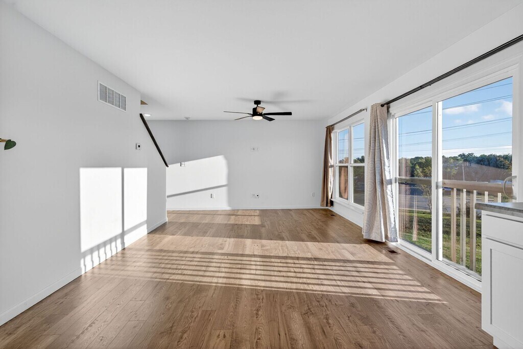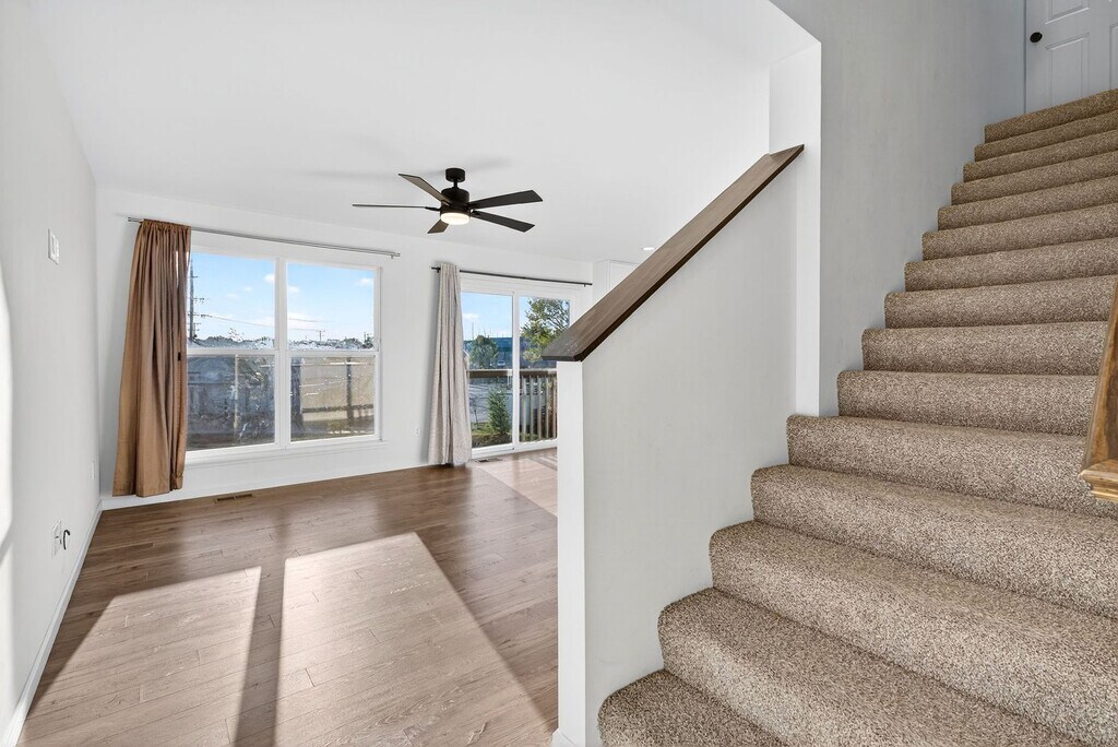 Discover contemporary living in this meticulously maintained 2-bedroom, 2.5-bathroom townhome in the Deer Grove community of Saint Peters. Built in 2023 by McBride Homes, this residence offers a blend of modern design and functional living spaces. Spacious Layout: Spread across approximately 1,252 sq ft, this two-story home features an open-concept main level with wood laminate flooring and 6-foot windows, allowing for ample natural light. Modern Kitchen: The kitchen boasts level 4 white wood cabinetry and stainless steel GE appliances, complemented by a glass sliding door in the dining area that leads to a private backyard. Master Suite: The master bedroom includes two walk-in closets and a private bath with an adult-height vanity and walk-in shower. Additional Bedrooms & Laundry: A second bedroom with a walk-in closet, a full bath, and a convenient second-floor laundry room complete the upper level. Basement & Garage: The full basement is roughed in for a ¾ bath, offering potential for future expansion. A two-car garage provides ample storage and parking space. Community Amenities: HOA Services: The homeowner association includes lawn mowing and snow removal, ensuring a low-maintenance lifestyle. Location: Situated off Mexico Road near Salt Lick Road, Deer Grove offers easy access to local amenities, schools, and parks.