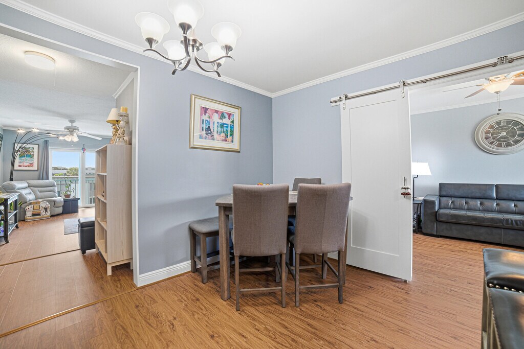 INTRACOASTAL VIEWS!! This adorable, newly remodeled, 2 bedroom, 1 bath, 3rd floor unit combines comfort and coastal charm, featuring a cozy layout with a water view from your living room and screened in balcony. Features include; newly remodeled floor plan with water view from living room, modern sliding barn doors for bedroom privacy or open wide for entertaining friends, complete hurricane impact windows and slider, ceiling fans, updated kitchen, remodeled bathroom with tile flooring and new vinyl flooring throughout unit. Relax and enjoy the breathtaking morning sunrises and evening skyline of Singer Island while watching boats go by. You will LOVE the breezes off your screened in balcony while enjoying a good book or glass of wine! You are less than 2 miles from the beautiful Palm