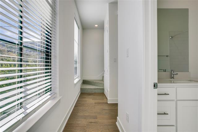 Available for immediate move-in! Modern design meets everyday livability in this stylish three-bedroom, three-bathroom townhome just a short stroll from the heart of the Bishop Arts District. Built in 2021, the home blends clean architectural lines with thoughtful details—engineered hardwood floors, soaring ceilings, and abundant natural light throughout. The open-concept main level offers seamless flow between living, dining, and kitchen, perfect for entertaining or quiet evenings at home. The chef’s kitchen features a large center island, sleek cabinetry, and stainless-steel appliances. Upstairs, the primary suite feels like a private retreat with dual vanities, a soaking tub, walk-in shower, and two generous walk-in closets. Step outside to your rooftop patio, ideal for morning coffee or sunset relaxation. Additional highlights include an oversized two-car garage, energy-efficient construction, and a location that’s truly hard to beat—walkable to Bishop Arts’ shops, coffeehouses, and dining, yet tucked away on a quiet street for privacy. Moments from downtown Dallas, Stevens Park Golf Course, trails, parks, and more! Modern comfort, designer finishes, and an unbeatable Oak Cliff location — Welcome home to 112 E Oscar Dr.