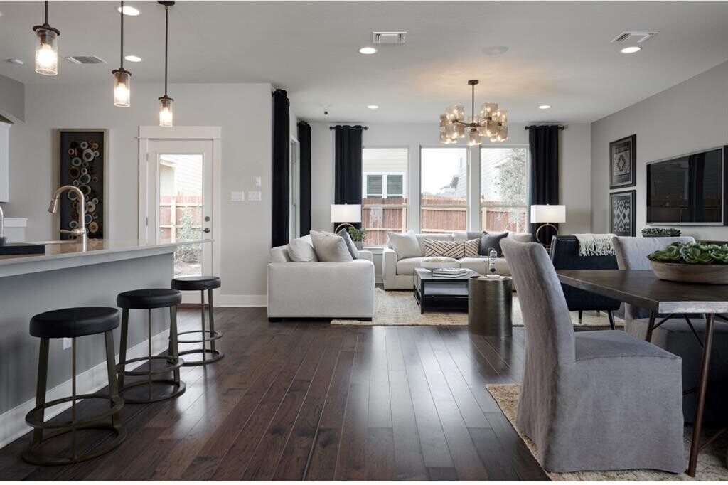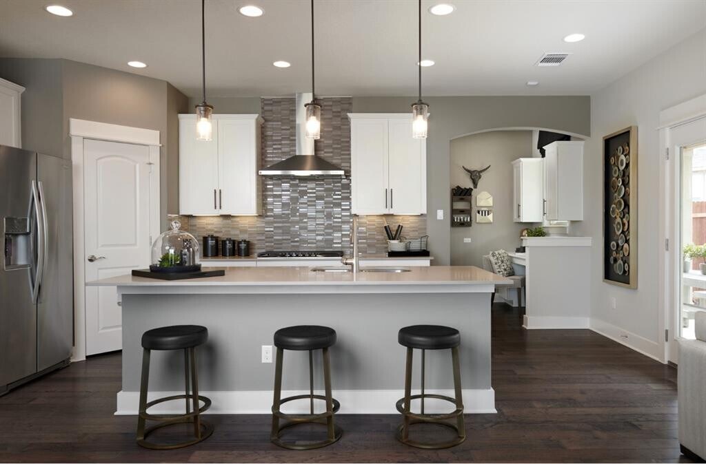 This home features an open concept floor plan and beautifully upgraded finishes throughout including quartz countertops, sleek luxury vinyl plank and stainless appliances. The large kitchen island overlooks the gathering room. The primary suite is upstairs with two additional bedrooms, great for the family wanting to be close to the little ones each night. Loft space becomes a place to relax or play, while the first floor flexible living space can be the guest bedroom or home office. Located in the award-winning master planned community of Santa Rita Ranch, you'll enjoy some of the best amenities including: Two-Resort Style Pools Dual Two-Story Waterslides Kids Splash Pool & Park Wellness Barn Fitness Facility State-of-the-Art The Green Play Park Extensive Parks & Nature Trails Catch & Release Lake Ranch House Amenity Center. Minutes from the new HEB, the neighborhood is situated near the Ronald Reagan corridor with easy access to Highways 183 and 29. Highly rated Liberty Hill Schools close by! MLS ID 3525959
