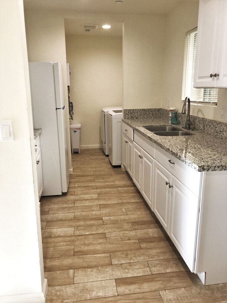 Beautiful duplex consisting of 3-bedroom, 1.5-bathroom unit to be available in North Bakersfield! This property is located in gated lot. It was recently constructed in 2021 and has gorgeous, neutral-colored tile flooring throughout, and granite countertops in the kitchen and bathrooms! All appliances are electric and include a stove, refrigerator, washer, and dryer. Tenants are allotted 2-parking spaces each on a gated, paved driveway located right in front of the building. Both units are Solar powered, tenants will enjoy low energy bills!