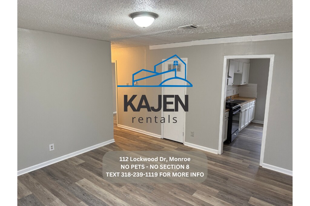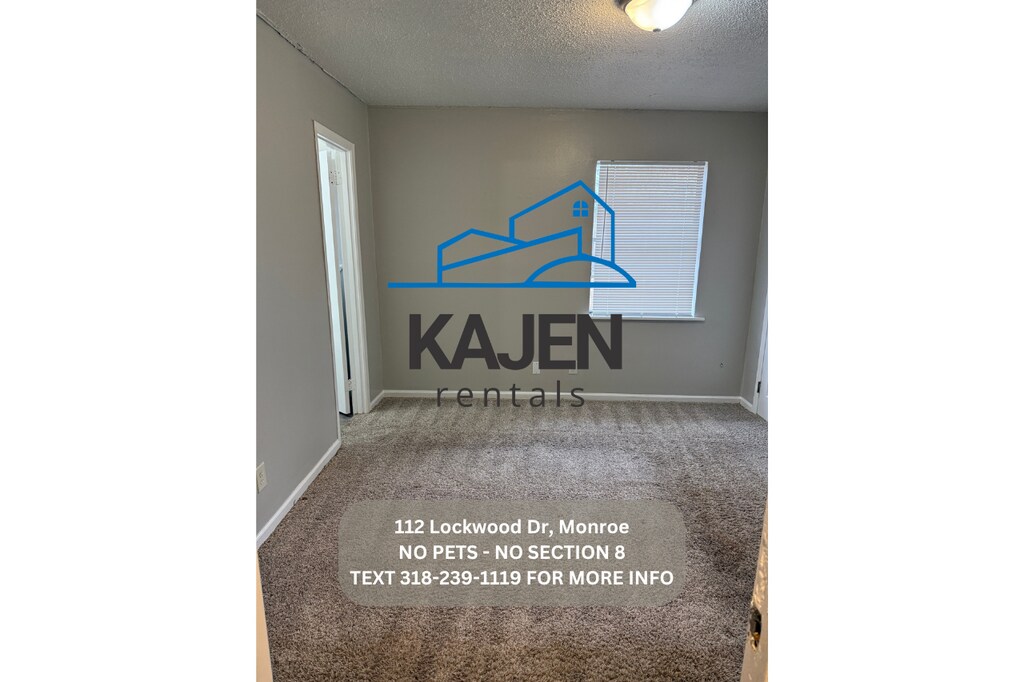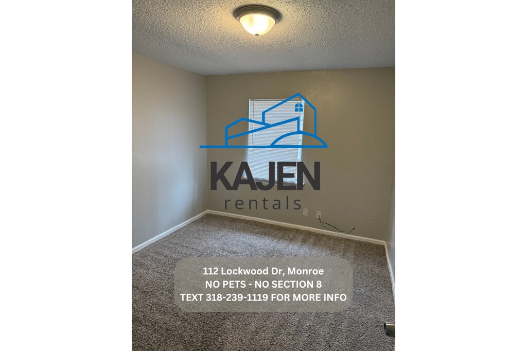 -Text "viewing instructions 112 Lockwood" We will then send you the instructions to do a self showing. Please read the following information prior to contacting us as this should answer most questions. -No Section 8 -No Pets -No rent to own -No smoking inside -Rent is $750.00 -Deposit is $600.00 -Income will be verified on each tenant. -Central Heat. -1 Window Unit for AC. -Located at 112 Lockwood Dr Monroe LA -We provide stove and refrigerator. -4 bedroom 1.5 bath home. -You pay all utilities (water, electric, gas, mowing, trash) -Washer and Dryer connections. -House is electric and gas. -$50 application fee per adult.