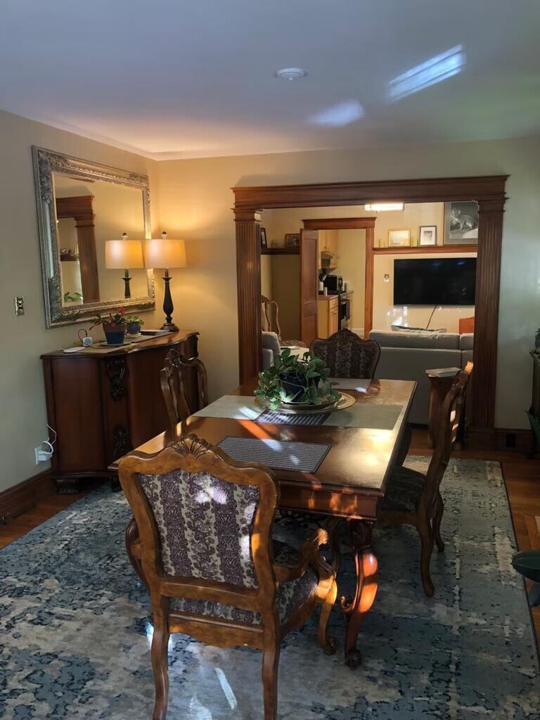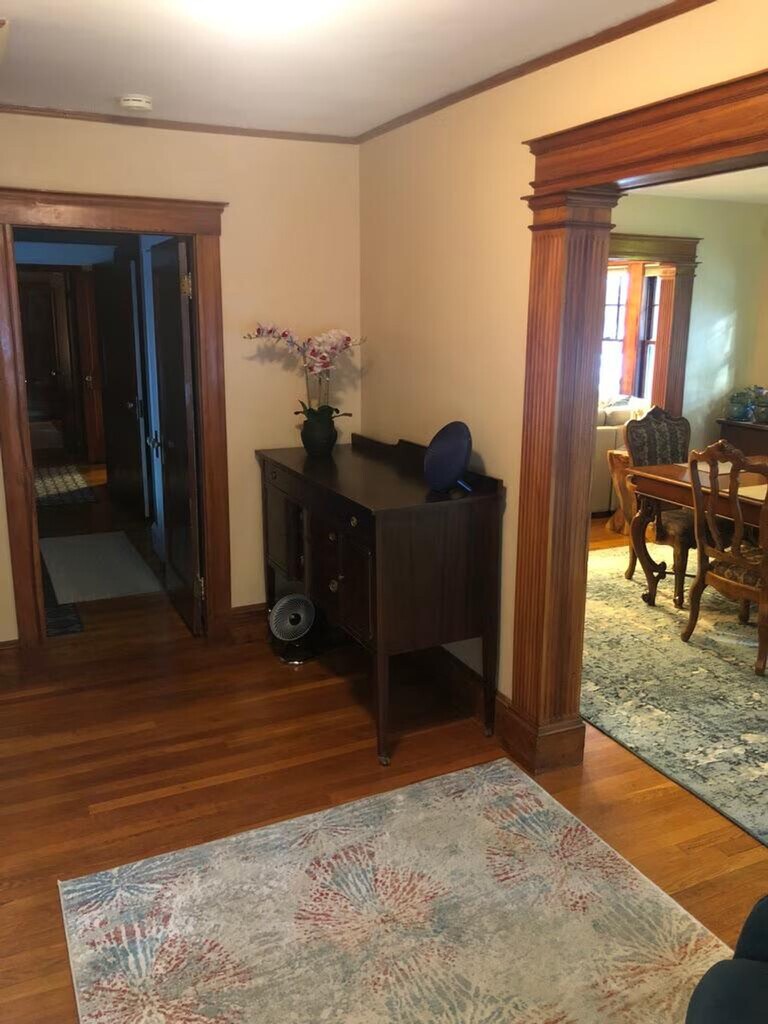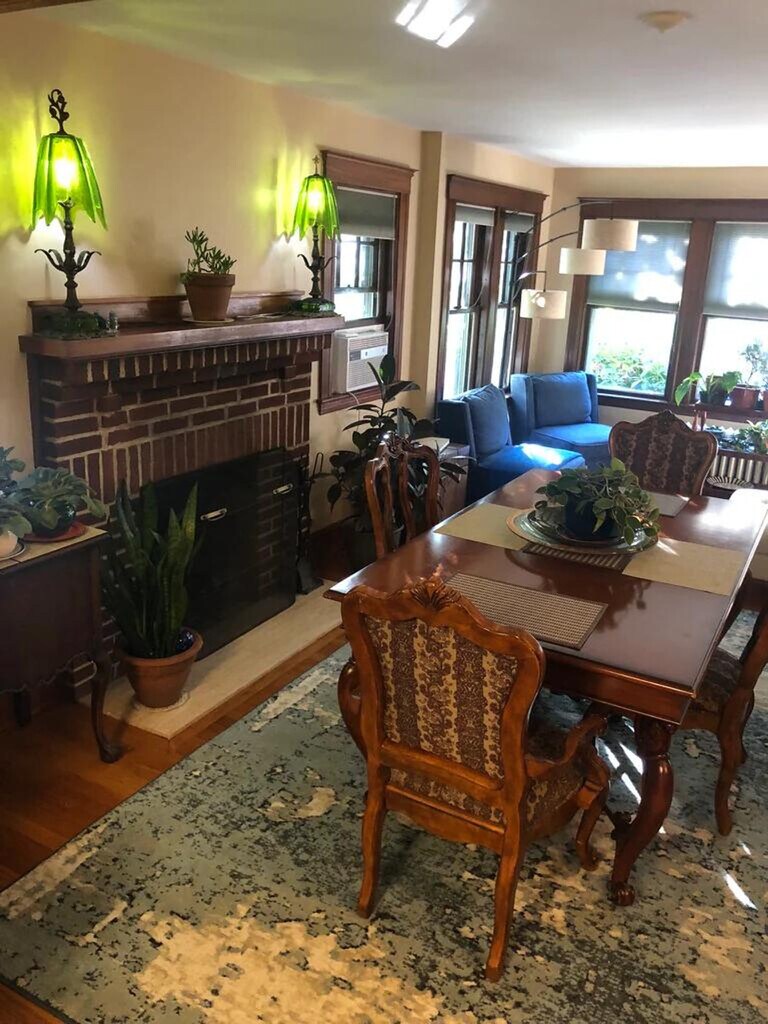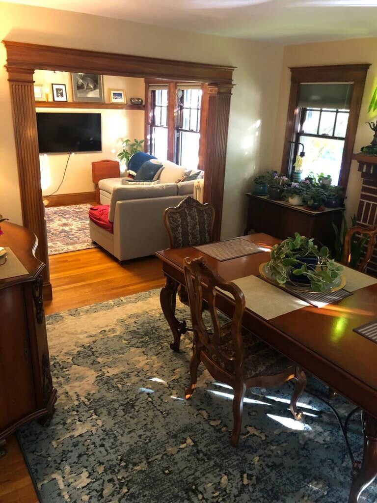 Feel at home in this Boston apartment featuring a vintage 1920's open floorplan and tall ceilings. This open and airy apartment is filled with lots of windows and light. It features a large living room and dining room, a dining room with a working fireplace, gumwood architectural period detail and character, an eat-in kitchen with a gas stove and pantry, and refinished hardwood oak floors throughout. Enjoy tons of closet space, hot water radiators for great winter comfort, a smart TV, and 1G wireless internet (mesh network). Laundry is available in the building. Monthly, bi-monthly, or weekly housekeeping is available for an additional fee. Walkable to bus lines and the Needham Line commuter rail, this apartment is close to Roche Bros., Starbucks, and Bertucci's. 'Porter Cafe' and 'West on Centre' are also a stroll away for dinner. Enjoy easy access to 128/95, yet situated on a quiet leafy street with very friendly neighbors. This is an official "Boston Smoke Free" apartment. [SI]
