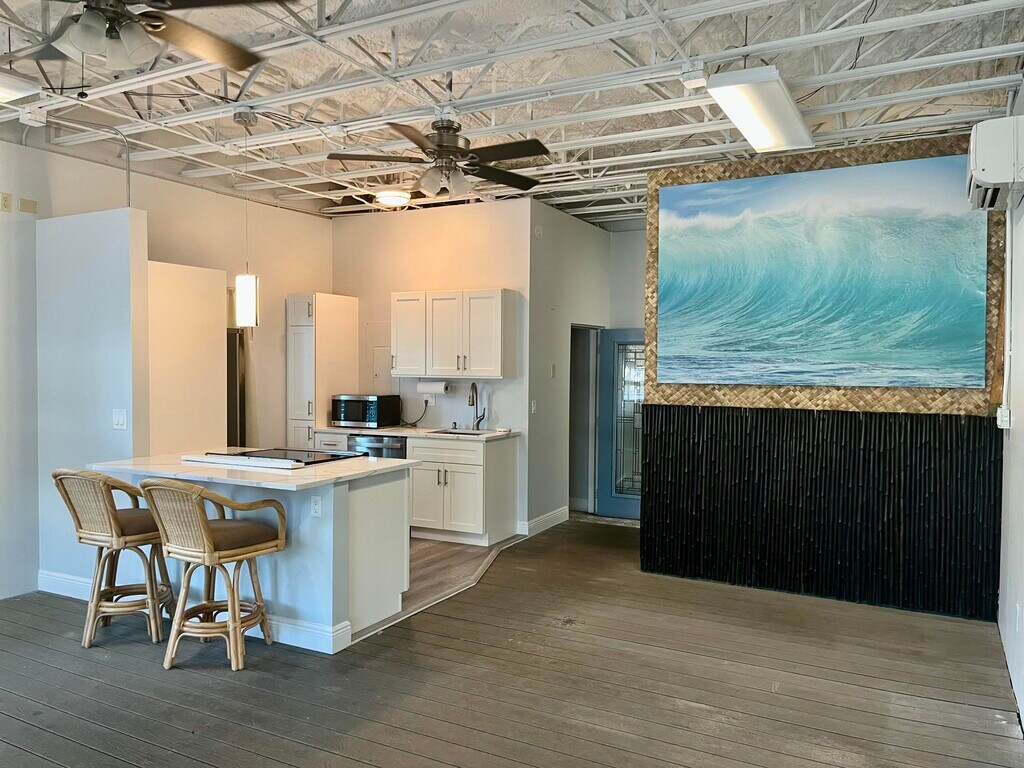 Great opportunity to live in an Irie Beach shack style studio with all utilities included Nice bright kitchen and bathroom with plank floor and front porch. walk to the beach and restaurants. Laundry onsite and big tiki hut in the back to chill under. Plenty of parking. Call for info !