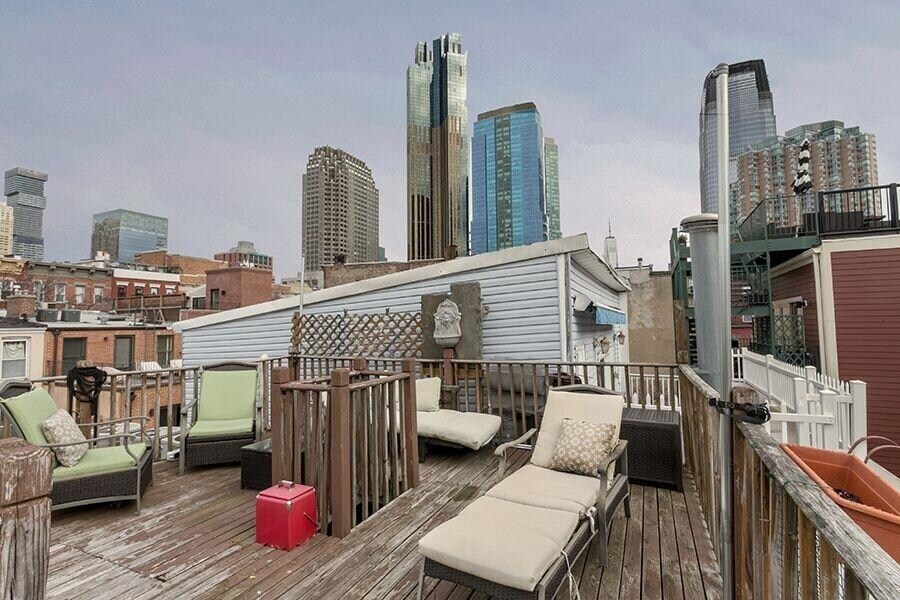 Amazing Gorgeous 2BR Penthouse in Paulus Hook. The penthouse has a private deck and access to a shared charming garden providing residents with a quiet oasis away from noisy city life. The apartment equipped with a designer kitchen with granite counter tops, ceramic tile bathroom with a jet tub, decorative fireplace, central A/C, gas hot forced air heat, intercom, washer and dryer in the unit. The penthouse is located in historic brownstone in Paulus Hook neighborhood () of Downtown area of Jersey City within few minutes walking distance to Grove Street and Exchange Place path train stations and a block from light rail. The ferry to Manhattan is two blocks away; there is also easy parking on the street and a public garage a block away. There are several fantastic restaurants and bars within a block including Light Horse Tavern, Satis Bistro, Triumph Bistro, Amelia's, La Cote, Sam AM. There are also a couple of boutiques and spas in the surrounding area, a supermarket, a convenience store within a block and a marina two blocks away. This cozy neighborhood, with brownstones, tasty restaurants and coffee shops, finds itself as a neighbor to Liberty State Park, Van Vorst Park, a marina, and bike paths with stunning views of Manhattan and the Statue of Liberty.