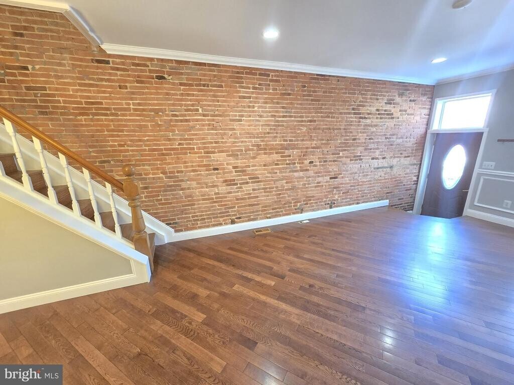 Newly renovated 2-bedroom, 2.5-bathroom town home in East Baltimore offers modern finishes and comfortable living. The home features hardwood floors, exposed brick walls, recessed lighting and ceiling fans throughout. The kitchen includes granite countertops and stainless steel appliances—refrigerator, gas stove, microwave and dishwasher—with a garbage disposal. Convenience is enhanced by a washer and dryer in-unit, central heat and central air. This town home provides an updated, well-appointed layout in a desirable city location.