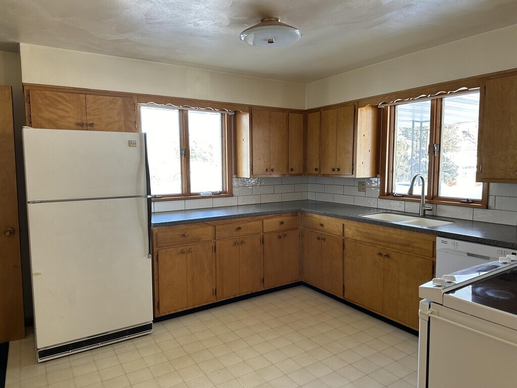 This well keep home features 3 bedrooms and 2 Baths. Park your vehicle in the garage and then come on inside via 2 steps. Once inside you can go to the basement or into the eat in kitchen. Kitchen has all appliances included even a dishwasher. Off the kitchen you will find the hallway and living room that all have hardwood floors. Down the hallway you will find the 3 bedrooms and full bath. in the Basement you will find the second bathroom with shower only and family area with finished walls and carpet. The laundry can also be found there with the washer and dryer provided. Tenant is responsible for utilities, lawn care and snow removal.