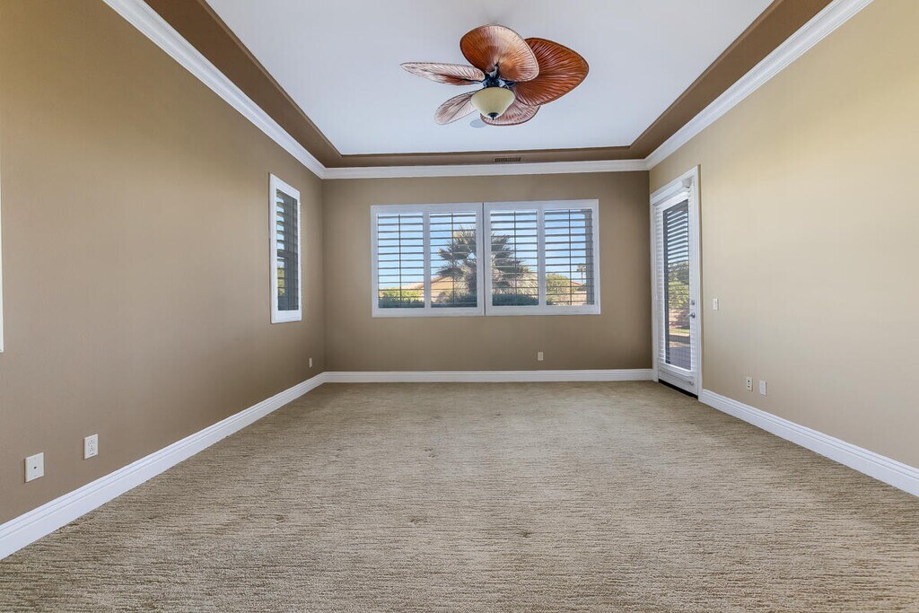 Available February 1st Stunning Lease Opportunity in Amatista at Capri! Live the desert lifestyle in this beautifully upgraded residence offering luxury,flexibility,and exceptional comfort. Freshly painted and thoughtfully enhanced,this home features granite countertops,20x20 tile flooring,crown molding,solar panels,and elegant shutters throughout,creating a refined and energy-efficient living experience. Designed for versatility,the floor plan includes two primary bedroom suites,ideal for multi-generational living,guests,or a private office setup. One suite doubles as an attached casita with its own courtyard entrance,while the primary retreat boasts custom built-ins and a beautifully finished walk-in closet. Step outside to your own private sanctuaryan expansive 10,000 sq. ft. lot with a Pebble Tec pool,beach-entry,and spa,offering the perfect setting for unwinding or entertaining in total privacy. The oversized 2-car garage with tandem storage provides ample room for vehicles,equipment,or seasonal items. Perfectly positioned on a quiet cul-de-sac,you're just moments from Ronald Reagan Elementary and the vibrant amenities of Freedom Parkincluding sports fields,courts,playgrounds,dog park,and open green spaces. Nearby shopping,fitness centers,and freeway access add to the convenience. This serene desert retreat is the one you'll want to call home.