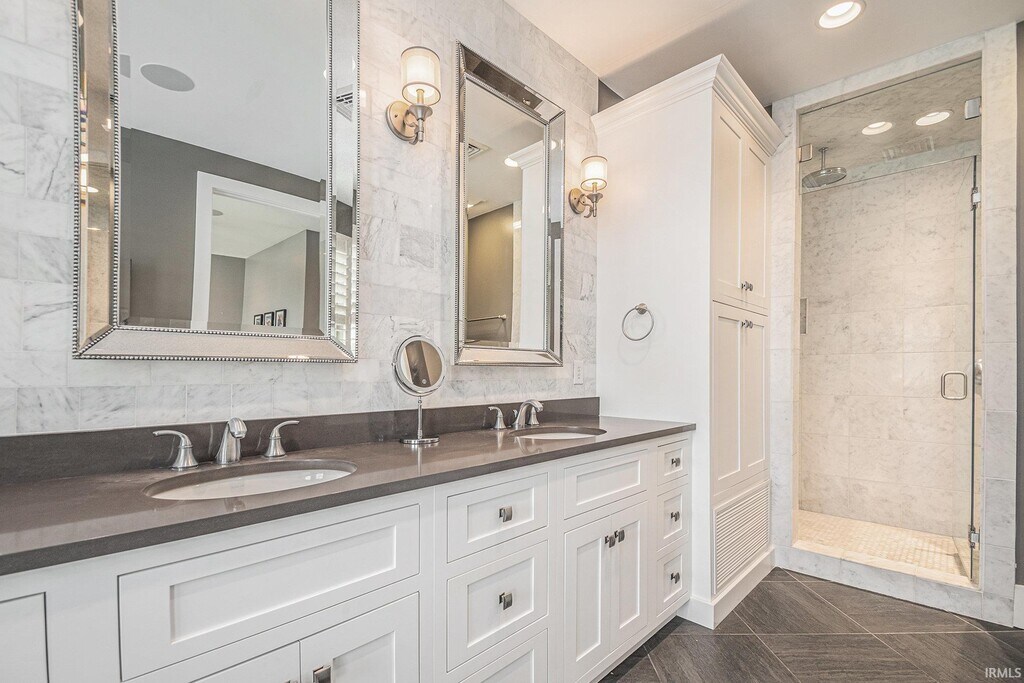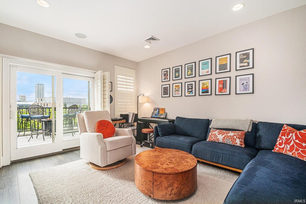 Welcome to River Race Townhomes! This beautiful 4-bedroom, 4.5-bathroom townhome in Downtown South Bend is ready for its new owner. The main floor offers a chef’s kitchen with Wolf range, Sub-Zero fridge, breakfast bar, and walk-in pantry with sink, plus a bright flex space with large windows and a cozy window seat which is ideal for a dining table or relaxed seating area! Highlights include 10-foot ceilings, premium shutters, and tile flooring throughout. An elevator provides convenience for the multi-level living. Enjoy two primary suites- one with a Juliet balcony and the other with a spa-like bathroom featuring a steam shower and soaking tub. Each suite offers spacious walk-in closets. The finished daylight basement offers tall ceilings, a full bathroom, bar, beverage fridge, and dual tankless water heaters. Recent upgrades include a new AC system on the third floor and a full HVAC system on the primary level. Outdoor features include a front courtyard with built-in gas firepit and a large private 3rd floor patio with water and gas hookups overlooking Seitz Park, the St. Joseph River, and Downtown South Bend.