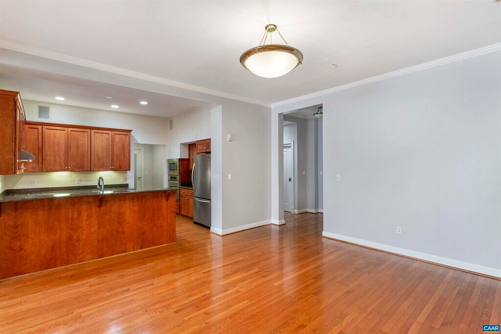 This exceptional 2 bedroom, 2.5 bath condo is ultra-conveniently located just a few steps from the bricks of the historic Downtown Mall of Charlottesville in The Holsinger building! This unit enjoys the best of Downtown living with easy access to all of downtown's great amenities. An inviting floor plan with 1,891 finished square feet of living space featuring spacious living & dining room, fully equipped kitchen with stainless steel appliances and granite countertops, hardwood floors, huge windows with abundant natural light. Private balcony has gorgeous views of nearby Southwest Mountains. Primary bedroom has bath with dual vanities, walk-in shower and walk-in closet, and the second bedroom is en-suite. Private, secure and covered garage parking, and extra storage unit in the building. Outstanding opportunity to live on the Downtown Mall and soak in the best of city life!