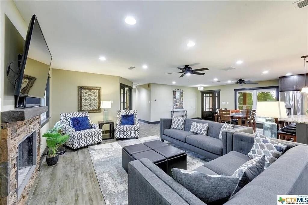 Discover this inviting three-bedroom, two-bathroom home with a two-car garage in the highly sought-after Spring Lake Hills neighborhood. Perched on a spacious two-thirds-acre tree-covered lot, the property offers refreshing hilltop breezes and scenic views of Texas State University and downtown San Marcos. The open living, dining, and kitchen layout creates a welcoming atmosphere for gatherings, complete with a cozy gas fireplace and a covered back patio overlooking the fully fenced backyard. Mature ash, pecan, mountain laurel, and live oak trees provide natural shade and privacy, while the comfortable home office with CAT 5 ethernet and access to 1GB service makes working from home a breeze. Perfectly situated for both convenience and lifestyle, you can walk or bike down to the San Marcos River, Bobcat Stadium, and downtown, with Austin and San Antonio just a short drive away. With no HOA and thoughtful deed restrictions that preserve neighborhood charm, this home balances privacy, community, and comfort in one beautiful setting. $500 refundable pet deposit per pet. $25 monthly pet rent per pet. Admin. Fee due upon lease signing: $295. Pet status must be registered at