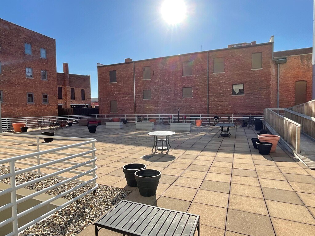 Experience downtown living at its best in this spacious 2-bedroom, 2- bathroom condo with a security system allowing access only to residents and authorized guests. The secured garage parking space is a close to the elevators for your convenience. This lovely condo features soaring high ceilings and large windows, with plenty of natural light and stunning views overlooking Calhoun Street. The thoughtfully designed floor plan offers comfort and convenience, featuringing two full bathrooms, large closets, a stylish modern kitchen and generous living space perfect for relaxing or entertaining plus this unit comes a 3x6 storage unit. Step outside to the outdoor courtyard or the rooftop patio complete with grills, tables and seating. The rooftop patio is secured at all times and the courtyard is secured after 5. Located in the heart of Fort Wayne, you'll be just steps away from the city's best restaurants, coffee shops, parks, art and entertainment venues-all while enjoying the quiet comfort of Midtown Crossing. No dogs allowed in this unit. Room Sizes: Living room: 12x18, Kitchen: 9x8, Bedroom 1: 16x11, Bedroom 2: 16x11.