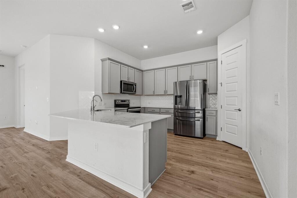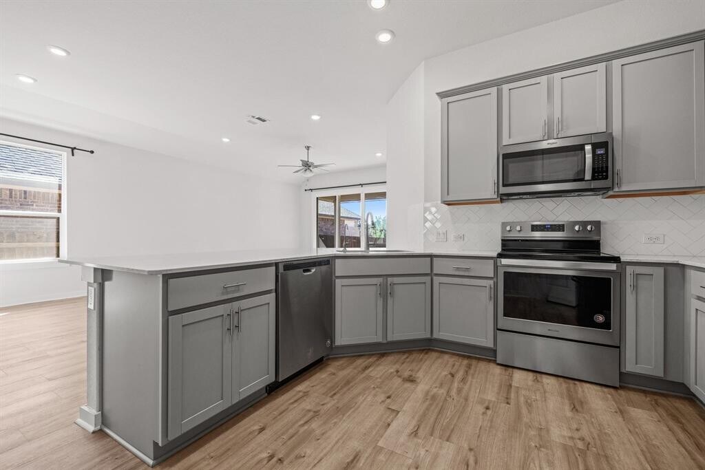 This beautiful 4-bedroom, 2-bath home offers comfortable modern living in a quiet Georgetown community filled with amenities. Designed with an open-concept layout, the home flows easily from the kitchen and dining area into the living room, creating the perfect space for entertaining or everyday life. The kitchen features stainless steel appliances, a large pantry, quartz countertops, and a breakfast bar that opens to the living area. Natural light fills the space through wide sliding glass doors that lead to a covered patio and fenced backyard — ideal for morning coffee or evening cookouts. The spacious primary suite includes dual vanities, a walk-in shower, and two large walk-in closets. Secondary bedrooms feature soft carpet for added comfort, while the main living areas have hard flooring for easy maintenance. A dedicated laundry room and ample closet space throughout the home provide added convenience and storage. Enjoy the best of community living with access to a resort-style pool, splash pad, playground, sand volleyball court, BBQ area, and walking trails along the South Fork of the San Gabriel River. Located just minutes from Wolf Ranch Shopping Center, Target, and H-E-B, this home also offers quick access to I-35, Highway 29, and 183 — making it easy to reach Downtown Georgetown, St. David’s Georgetown Hospital, or a short drive into Austin. Experience the charm of small-town living with all the modern conveniences nearby!