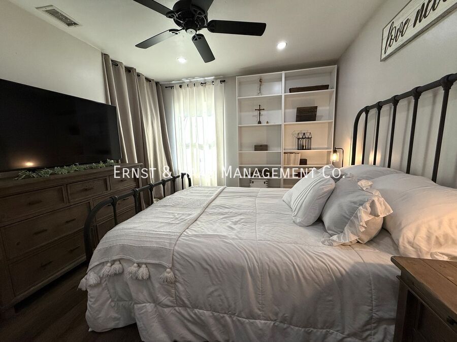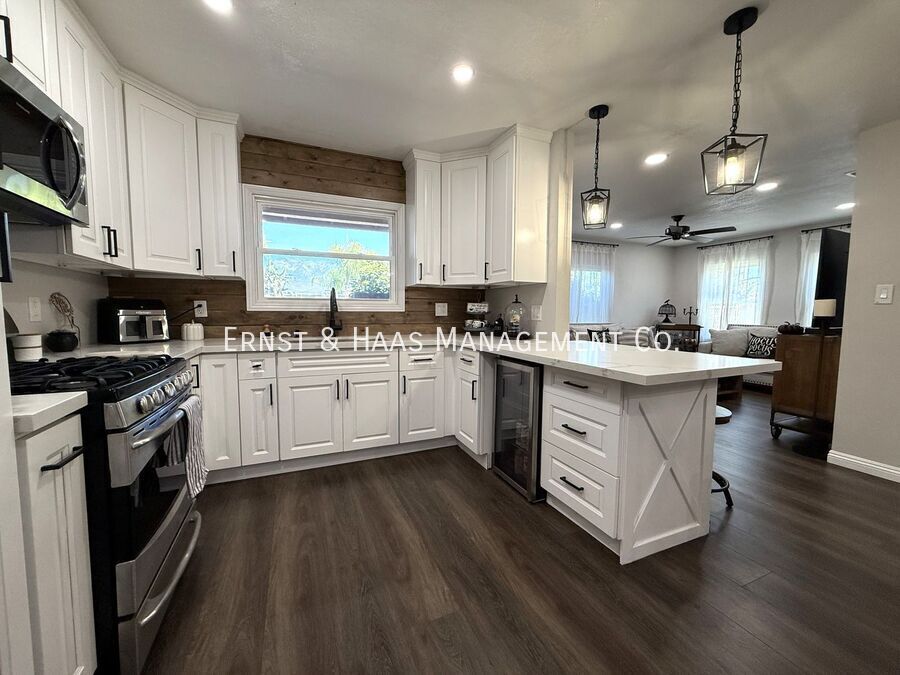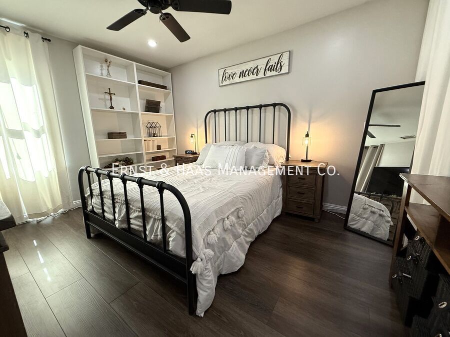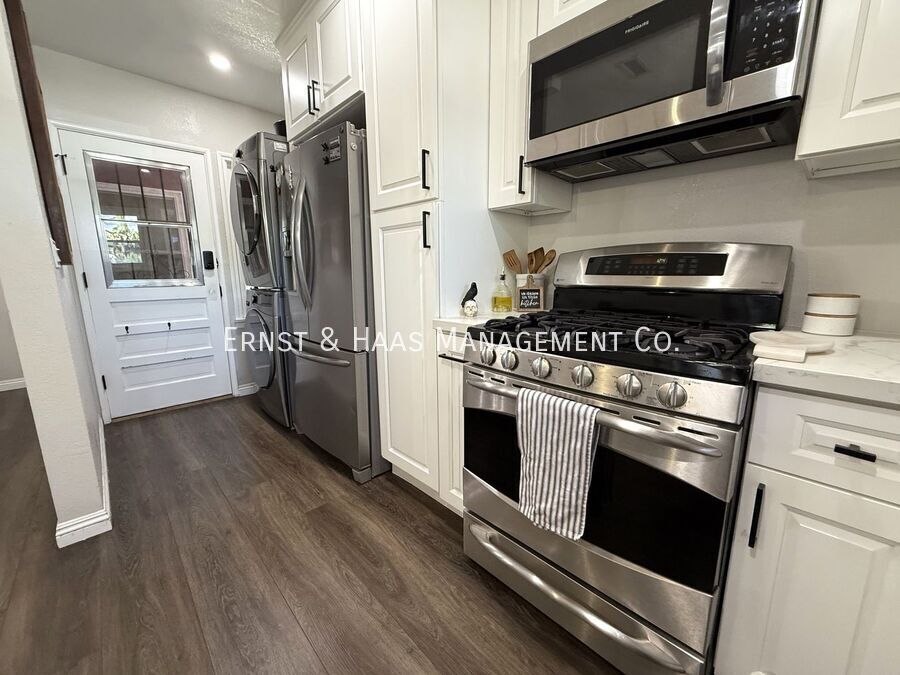 This recently remodeled front home offers modern style, comfort, and convenience. Enjoy a lush green lawn with an automatic sprinkler system and a private covered patio, perfect for relaxing or entertaining. The property also features a shared backyard and a finished one-car garage with A/C, ideal for use as an office, studio, or man cave. Inside, you'll find fresh paint, luxury tile flooring throughout, and a bright, open layout. The kitchen showcases quartz countertops and comes equipped with stainless steel appliances, including a stove, microwave, and wine cooler. A washer and dryer are also included for your convenience. Additional highlights include new windows, a new central heating and air unit with a smart thermostat, and a large driveway. All utilities and gardening service are included, making this a truly hassle-free home. Move-In Special is first two weeks of December free! For more information, or to schedule a viewing for this property, please call or text Lorenzo at , or visit us online at