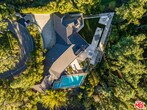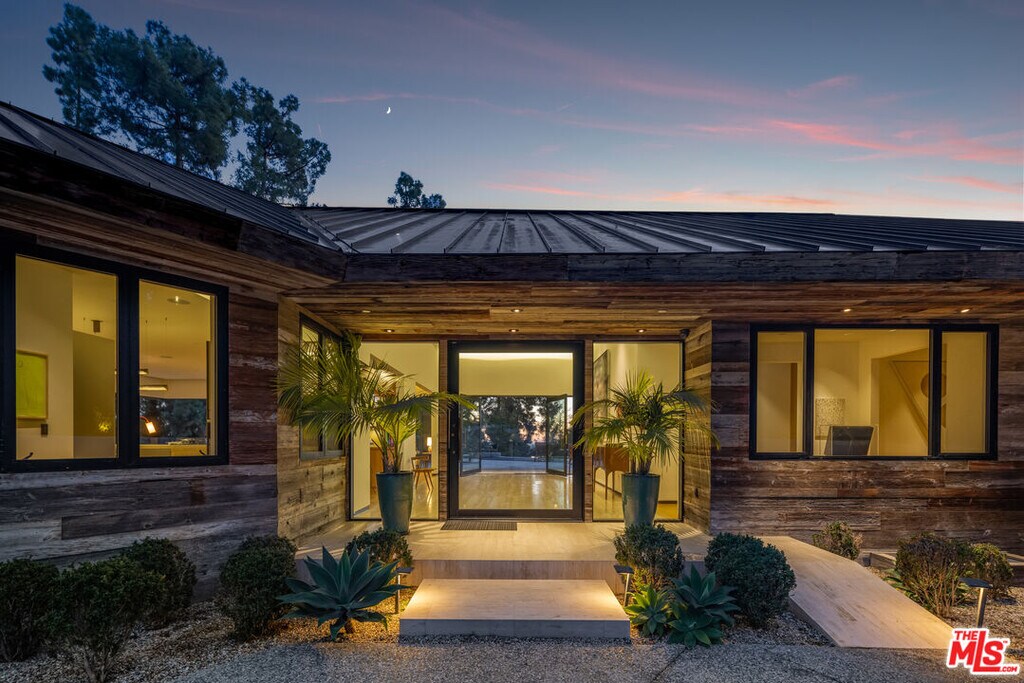 Crafted in 1957 for MGM's legendary General Manager Eddie Mannix, this Beverly Hills estate carries a cinematic lineage that has only been elevated over time. In 2010, the property underwent a meticulous reinvention - an almost complete rebuild that expanded the home from 5,000 to over 8,000 square feet - guided by a team of architects formerly with Pritzker Prize-winning David Chipperfield. Their influence is unmistakable in the restrained geometry, the Roman travertine detailing, and an intentional restraint that elevates simplicity into a statement. Clad entirely in reclaimed Montana oak, the facade sets the tone for interiors defined by natural materials, clean lines, and bespoke detailing. A private, gated drive leads to the entry gallery, setting up sight lines that capture Century City and ocean views on one end, and Downtown's skyline on the other. Enveloped by mature landscaping and sited on approx. 3/4 acres, this home feels like a rustic retreat while being moments from all the City has to offer. The main living area revolves around an open kitchen and a seamless indoor-outdoor flow created by pocketing glass doors that extend to the infinity pool, fire pit lounge, grassy yard, and a full outdoor entertaining sequence complete with bar, barbecue, and an expansive, shaded lower terrace. Inside, the west wing of the property offers two primary suites which each feature their own fireplaces, large dressing rooms, and spa-level baths with steam showers. One additional bedroom suite completes the first level. The second level offers an office, gym and three additional bedrooms. Seven total baths, including two luxuriously-appointed powder rooms, continue the home's palette of oak, stone, and bronze. Additional amenities include a fully soundproofed theater designed with the warmth of a living room with adjacent bar and glass-enclosed wine display. Convenient Crestron automation runs throughout, and storage is abundant, including attic access from both the garage and the primary closet. Gallery spaces, excellent wall space for art, and adjustable art lighting reflect the eye of the current owner, a notable collector with works placed in institutions such as LACMA and Tate Modern. Positioned within one of Beverly Hills' most discreet and desirable pockets, north of Sunset Blvd., this estate pairs architectural intention with privacy, views, and a timeless material vocabulary - an understated yet commanding retreat above the city. MLS# 26636489