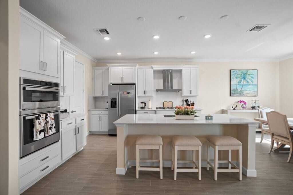 Courtesy of Highlight Realty Corp/LW. Experience refined living in this newly built luxury home completed in February 2023. This spacious residence features 5 bedrooms, 4 full baths, a den, and an elegant loft with an open-concept layout. A guest suite is located on the main level, while the upstairs offers a private owner's retreat. The gourmet kitchen includes premium stainless steel appliances and designer finishes, complemented by tile flooring on the first floor and plush carpeting upstairs. Situated in an exclusive resort-style gated community with a manned entrance, residents enjoy lush landscaping, a community garden, and exceptional wellness amenities.