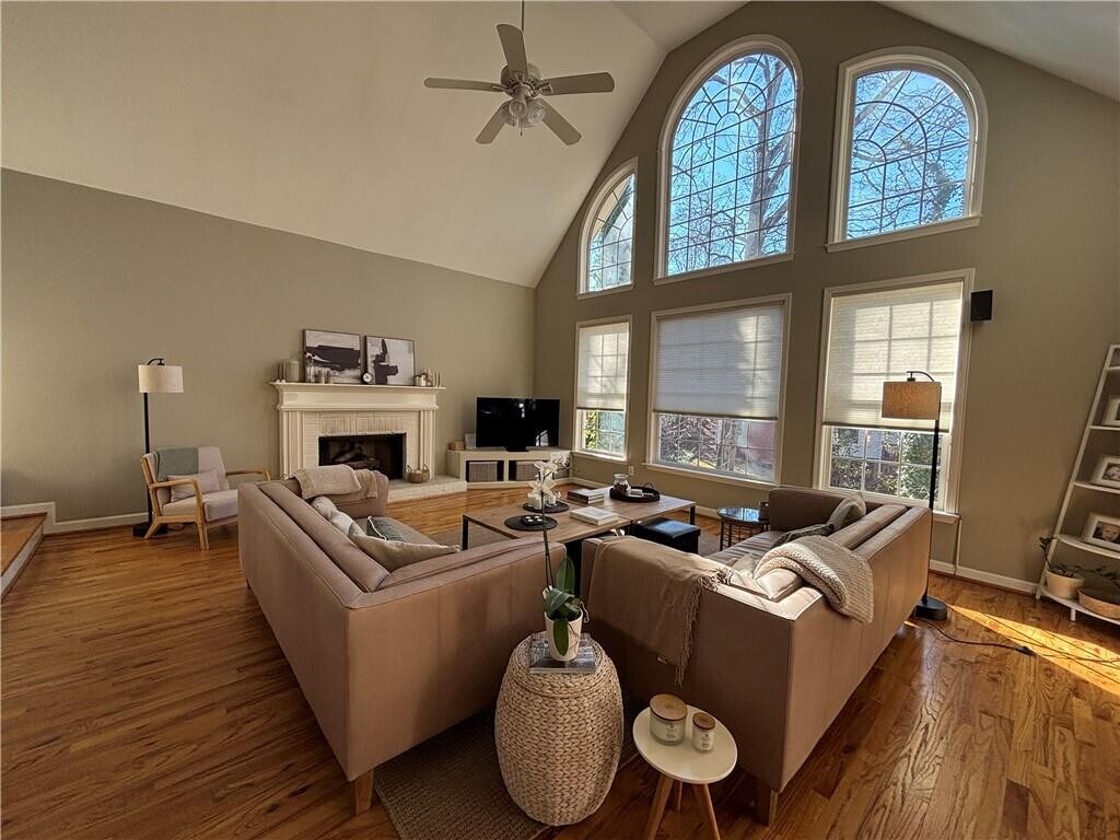 Stunning cul-de-sac home with a low-maintenance,private backyard and fully new hardwood floors throughout. Step inside to an impressive two-story foyer with a grand staircase that sets the tone for this elegant residence. The chef’s kitchen features white cabinetry,double ovens,and an oversized island,seamlessly overlooking the living room—perfect for everyday living and entertaining.The light-filled living room boasts soaring ceilings and dramatic floor-to-ceiling windows. The spacious primary suite offers a spa-like bath with a separate tub and shower. A bedroom and full bath on the main level provide ideal accommodations for guests or multigenerational living.The daylight,full basement,partially finished,offers flexible space for a recreation room,home office,or additional living area. Enjoy evenings or gatherings on the expansive deck,overlooking a peaceful,private backyard.Located in Alpharetta’s top school district,this home also offers access to Windward’s private lake with boating,fishing,and swimming,along with a private gym,water park,and scenic hiking trails along a tranquil creek just beyond the backyard.A perfect blend of luxury,privacy,and resort-style living. MLS ID 7714790