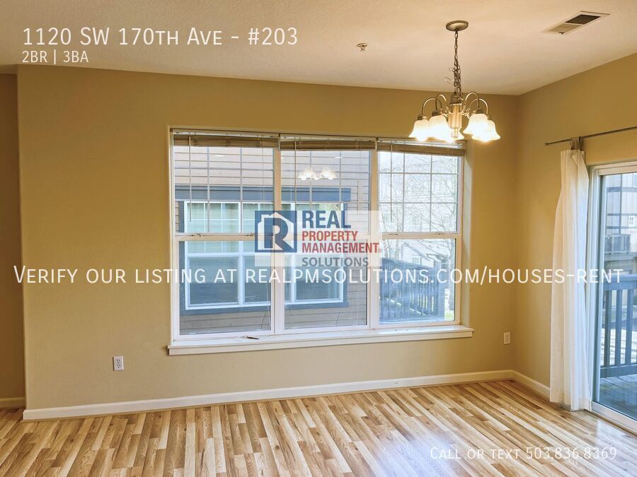 Conveniently located near Elmonica Station, this desirable corner-unit condo is ideally situated between Nike and Intel, offering excellent access to the MAX Light-Rail, major employers, shopping, and dining. This well-maintained home features a two primary bedroom floor plan, providing flexibility and privacy. The main-floor open layout is perfect for entertaining, daily living, or evolving needs, and is filled with an abundance of natural light. The open kitchen flows seamlessly into the dining area and includes a sliding door leading to a private balcony. Additional highlights include a cozy gas fireplace, laundry closet, en-suite bathrooms, and well-proportioned living spaces creating a clean, bright, and inviting living space. An attached garage provides secure and guaranteed parking, adding convenience and peace of mind. Property Highlights: -Corner-unit condo near Elmonica MAX Station -Prime location between Nike and Intel -Two primary bedrooms with en-suite bathrooms -Open-concept main floor with abundant natural light -Open kitchen with dining area and balcony access -Gas fireplace -Attached garage with secure parking This home is ideal for tenants seeking comfort, convenience, and a prime Beaverton location with easy transit access. SCREENING CRITERIA: Screening criteria may be found at
