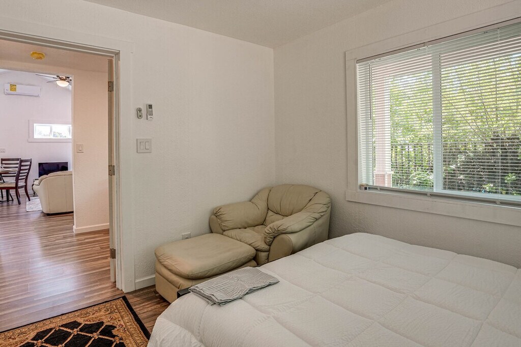 Discover the charm of Concord with this delightful 1-bedroom apartment featuring a cozy sleeping nook and 1 bathroom. Nestled near Lime Ridge Open Space and the California Riding and Hiking Trail, this vacation rental offers a serene escape from city noise while keeping you close to top attractions. Enjoy the local farmers' market at Todos Santos Plaza, embark on a scenic hike, or venture to San Francisco for iconic sights. This single-story home requires an exterior staircase to enter. Feel at home in this inviting apartment, complete with a smart TV, dining table, and a covered porch with seating. The kitchen is fully equipped with a refrigerator, microwave, stove, oven, dishwasher, drip coffee maker, toaster, cooking basics, dishware, flatware, and spices, ensuring you have everything you need for a comfortable stay. Parking is available in the driveway for up to 3 vehicles, with additional street parking on a first-come, first-served basis. Please note that the garage is not available for guest use. Located just 1 mile from Lime Ridge Open Space and 2 miles from the California Riding and Hiking Trail, this apartment is perfectly positioned for outdoor enthusiasts. Explore the vibrant local scene at Todos Santos Plaza or take a short drive to San Francisco for a taste of the city's iconic attractions. The property has a no-smoking and no-pets policy, and events, parties, or large gatherings are not allowed. Guests must be at least 18 years old to book, and photo ID may be required upon check-in. Additional fees and taxes may apply. The homeowner lives on-site in the main house and may be present during your stay. [SI]