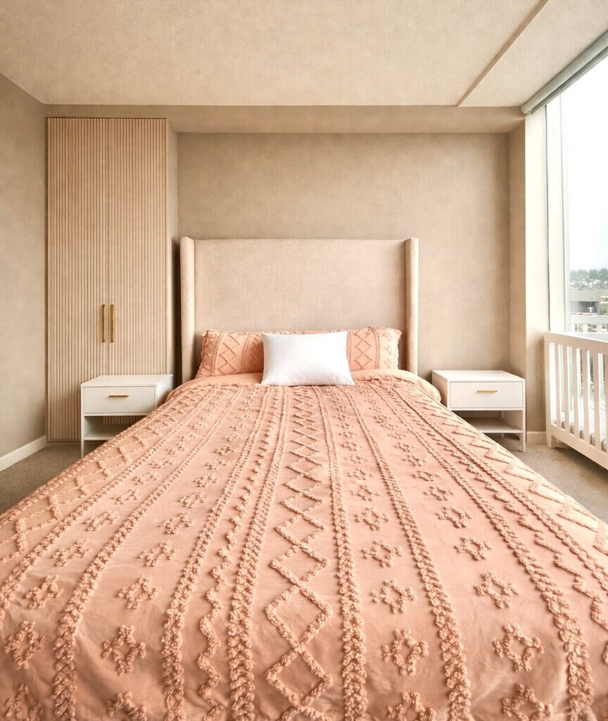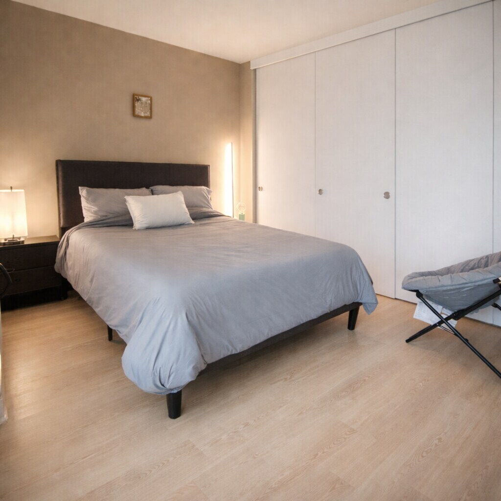 Feel at home in this stylish Bellevue getaway. This comfortable 2-bedroom, 2-bath penthouse brings the best of downtown living together with floor-to-ceiling windows and beautiful Mt. Rainier sunrises. The open layout is perfect for relaxing or working, and the futon sofa and fold out chair to bed make hosting extra guests easy. This space blends modern comfort with just the right touch of luxury. Whether you’re here for business, family time, or a simple escape, this apartment is centrally located to everything you need. [SI]