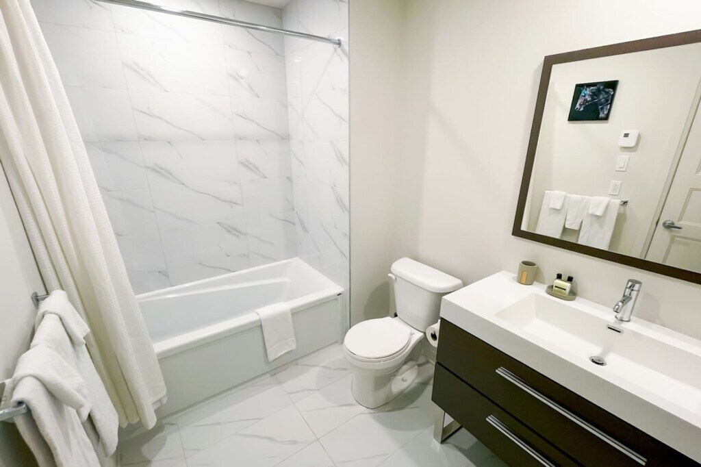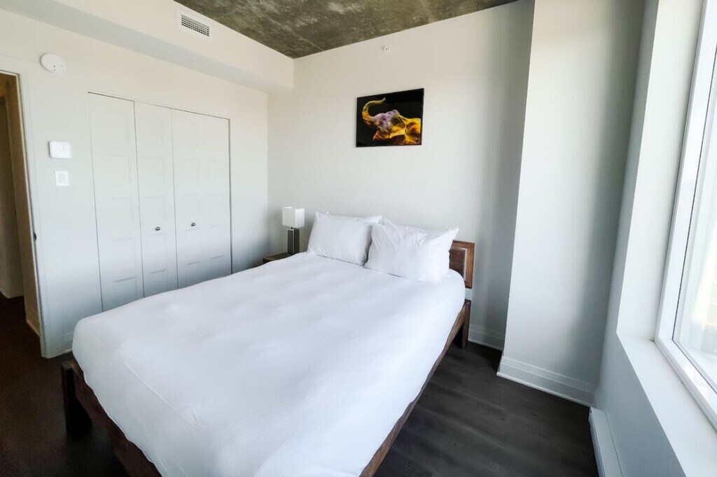 Discover modern living in the vibrant heart of Montreal with this sleek 1-bedroom apartment. Ideal for business travelers, families, or couples, this stylish space blends comfort with contemporary design, offering a perfect retreat for both work and leisure. Enjoy scenic city views from this spacious apartment, which includes a fully equipped modern kitchen and access to a private balcony. The building offers a 24/7 concierge service and is equipped with an on-site gym and pool. Step into a spacious and welcoming living area with panoramic views of Montreal's skyline. Relax on the plush sofa, enjoy your favorite shows on the Smart TV, or simply unwind while taking in the stunning cityscape. Unleash your culinary creativity in the fully equipped modern kitchen, designed with ample counter space and premium appliances. Whether you're preparing a quick meal or an elaborate dinner, this kitchen provides everything you need for a perfect cooking experience. The tranquil bedroom features a queen-size bed and impressive skyline views, while the sleek, contemporary bathroom offers all the essentials for a rejuvenating experience. Indoor parking is available upon reservation with a fee. An IPTV Box with more than 300 channels is available on request for a fee. Pets are permitted with a fee of 450 plus tax. Located in the vibrant neighborhood of Saint-Laurent, this property offers an exceptional location for both convenience and relaxation. The area is known for its blend of residential comfort and accessibility to essential amenities. You'll find a variety of shopping, dining, and entertainment options just around the corner, including the popular Place Vertu shopping center. For outdoor enthusiasts, Marcel-Laurin Park is just steps away, offering lush green spaces and recreational facilities. With excellent transport links nearby, including access to highways and public transit, getting around the city is effortless. The nearest metro station, Du Collège on the Orange Line, is just a short drive away, providing easy access to downtown Montreal and surrounding neighborhoods. Several bus lines also service the area, and major highways allow for quick access to different parts of the city. Pierre Elliott Trudeau International Airport is just 15 minutes away by car. Guests will have full access to the entire apartment with complete privacy. The apartment is smoke-free and designed for families, offering a safe and welcoming space for all ages. A pack ‘n play is available upon request. A 24/7 guest support team is available to assist with any needs during your stay. A Notice to Vacate must be sent in writing 30 nights before the departure date for stays over 30 nights, or a charge of 30 nights will apply. Reservations can be extended with 30 nights' notice, subject to availability and rate variances. Perfect for business, this apartment offers high-speed Wi-Fi, a dedicated workspace, and an atmosphere that encourages focus and relaxation. [SI]