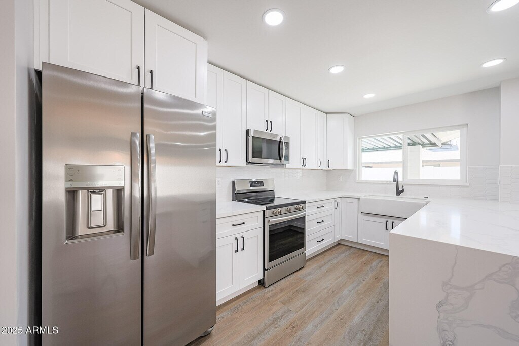 POOL SERVICE INCLUDED WITH RENT! Amazing 2025 remodel from top to bottom ready for a great tenant! This owner has thought of everything! From new wiring to new plumbing,new windows to a pool resurface,this home has had so much work done! Spacious Kitchen with oversized peninsula adjacent to the large Living & Dining Rooms. Double sinks in both bathrooms,with beautiful custom tile work from floor to ceiling! Home has luxury vinyl plank throughout the entire house! Laundry area taken out of the garage and relocated inside to a dedicated laundry room complete with tons of cabinetry! Easy to maintain landscaping with turf in the front yard and a small natural grass area in back. New block wall surrounds the backyard complete with 8'6'' RV Gate! Take a look today!