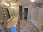 Spacious,3 bedroom 2 bathroom home in Woodridge Manor. 1,645 sq feet boasts a split floor plan with wood flooring,new paint,and new carpet. Warm,neutral colors of the interior living area and kitchen make this cozy house "home". This home offers a beautiful fireplace,a fully equipped kitchen (with all appliances included),and a large indoor laundry room. The master bedroom is "king-sized" and features a private bathroom w/two walk-in closets,garden tub and double vanity makes this the ideal master suite. A large fenced in back yard,open patio,and double-car garage make entertaining easy! Utilities and Landscaping tenant responsibility.