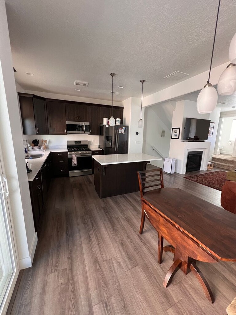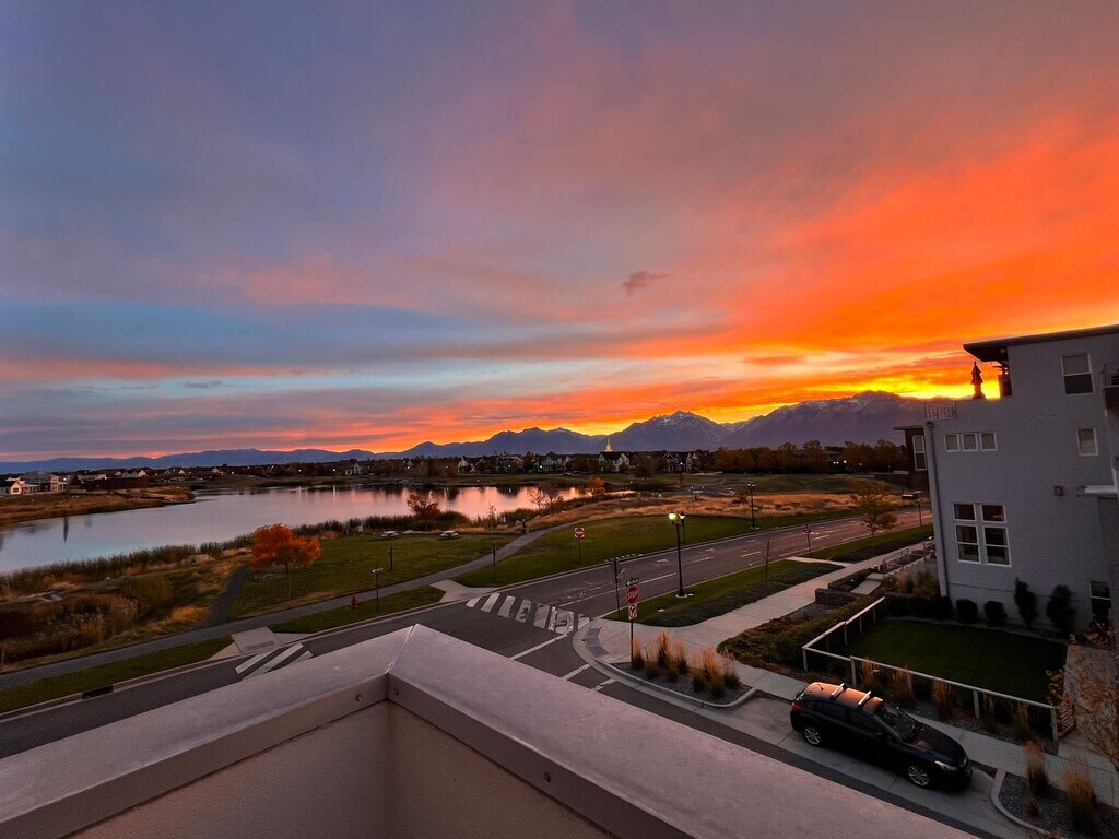 Private roof deck and balconies. Private 2 car garage. Key Features: Scenic Views: Enjoy unmatched lake and mountain views from your private balcony and roof deck. Spacious Bedrooms: The primary bedroom features warm natural light, a stylish barn door to the ensuite, and plenty of room for relaxation. Versatile Second Bedroom/Office: Ideal for a guest room, home office, or both, with ample closet space and natural light. Ensuite bathroom with tub/shower. Modern Interior: Neutral tones, quality finishes, and a functional layout create an inviting, move-in-ready space. Community Perks: Located near walking paths, green spaces, and within close proximity to shops, restaurants, and schools. This townhome offers the perfect blend of tranquility and accessibility, making it a rare find in todays market.