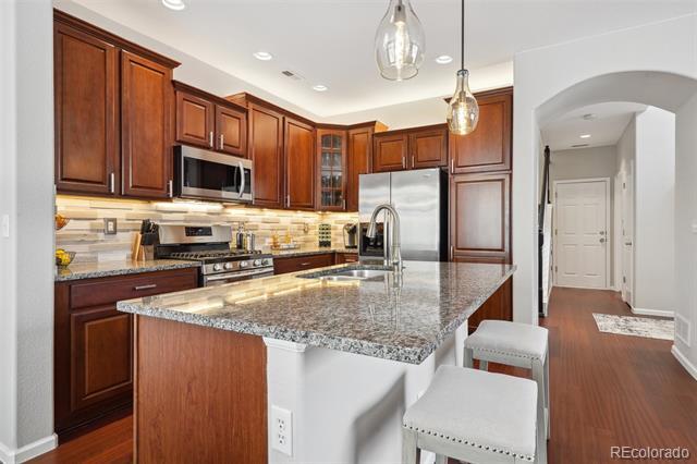 Welcome home to this spectacular townhouse with custom lighting, new carpet, fresh paint throughout and so much more! This lovely home is available furnished or unfurnished, call for details! This layout offers open concept living on the first floor with high ceilings, wood flooring, tons of windows for a light bright environment and a fantastic entryway. The kitchen offers stainless steel appliances including a gas range, slab granite countertops, a natural stone backsplash and lots of cabinet space including a large pantry cabinet. The dining room offers plenty of space for your statement table and a sliding glass door to the patio – the perfect place for a grill, enjoy entertaining friends for a cookout or a festive dinner party. The living room offers a gas fireplace, ceiling fan and built in storage. This home offers an oversized 2 car garage, a powder room on the first floor as well as a large laundry room with high end appliances! Head upstairs to find the large, luxurious master bedroom with vaulted ceilings, plush new carpet, custom lighting, a private balcony and an en-suite five piece bathroom. This home offers two additional guest bedrooms and a full bathroom on the second floor all with new carpet, huge closets, and custom, dimmable lighting! Not to mention a loft style office with built in storage and a desktop, perfect for a home office or a study/homework area! Furnishings and artwork available in photos. This lovely community offers a clubhouse, pool, spa/hot tub, basketball courts and tennis courts. ** Tenant pays utilities including electric, gas, cable and internet ** Landlord pays HOA Fees, snow removal, grounds maintenance, trash, water and sewer ** Specific lease terms and conditions are subject to owner’s approval prior to lease execution Townhouse MLS# 3117536