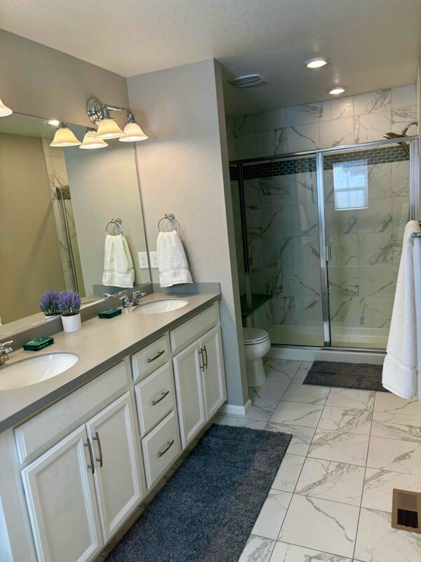 Property Id: 697351 Beautiful fully furnished short or long term rental townhome in Central Park, near parks, shops and schools. On the main level there is a charming entry way with lots of storage, an open concept living room/kitchen/dining room and a half bathroom. The kitchen is well appointed with new stainless steel appliances, and quartz countertops cooking essentials and dishes provided. On the second level there is a master bed/bath with a king sized bed, one bedroom with a queen sized bed and one bedroom with a twin sized bed and a third bathroom, laundry and large linen storage closet. The master bedroom has an 5 piece master bathroom with oversized tub and a walk in closet. Additional space in the unfinished basement for storage. 2 car garage and fenced outdoor space. Minutes from Stanley Marketplace, Anschutz Medical Campus, University of Colorado Hospital and Children's Hospital. Minimum 1 month lease $180/day.