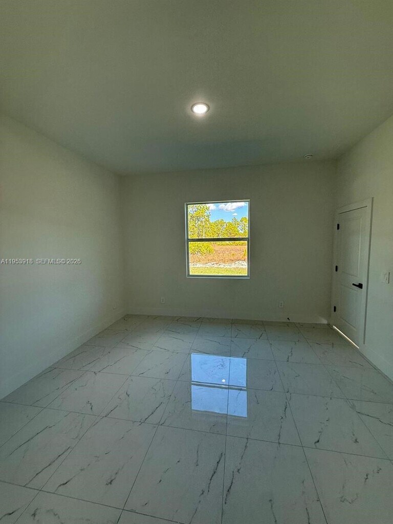 Brand new construction !! This beautiful single-family home located on a corner lot features 3 bedrooms plus a den that can be used as a fourth bedroom, home office or playroom, 2 full bathrooms, and a 2-car garage. Open floor plan with porcelain flooring throughout, modern kitchen with quartz countertops, stainless steel appliances, and custom cabinetry. Includes laundry room, central A/C, and impact windows. Covered patio and spacious backyard. Available for sale or rent. This move-in ready home is ideal for families, professionals, or investors seeking quality new construction in Lehigh Acres, FL. MLS # A11953918