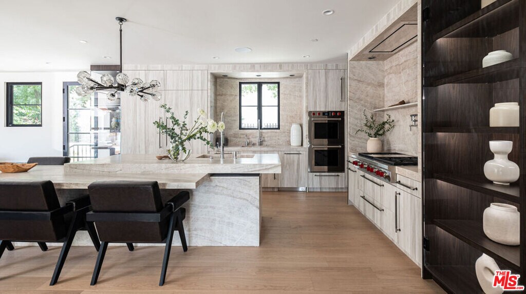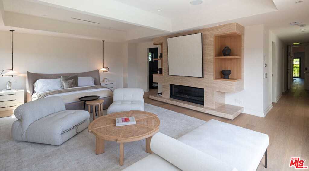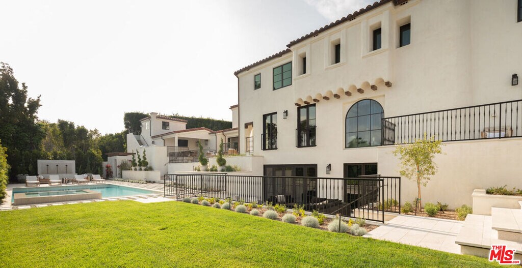 Welcome to Casa Estrella, a fully reimagined transitional Spanish estate set in one of Beverly Hills' most coveted locations. Rebuilt down to the frame, this 6-bedroom, 9-bathroom residence showcases all-new construction with the finest luxury finishes throughout. The main level offers a bright, open-concept floor plan that seamlessly connects the formal living and dining rooms, private office/library, and expansive family room. At the heart of the home, the chef's kitchen is appointed with top-of-the-line Wolf appliances, custom stone sinks, bespoke cabinetry, and a generous walk-in pantry thoughtfully designed for both everyday living and elegant entertaining. Upstairs, four ensuite bedrooms include a spectacular primary suite featuring dual spa-inspired baths, separate walk-in closets, and breathtaking city views. Designed for ultimate entertainment and wellness, the lower level boasts a state-of-the-art theater, fully equipped gym, infrared sauna, cold plunge, bar, and temperature-controlled wine cellar. The outdoor grounds are equally impressive, offering a resort-style pool and spa, outdoor kitchen, and beautifully landscaped lounge areas ideal for year-round California living. Additional amenities include a detached guesthouse, five fireplaces, a three-car garage, and a motor court accommodating up to 12 vehicles. Located just one mile from the iconic Beverly Hills Hotel and the world-class shopping and dining of Rodeo Drive, Casa Estrella represents the perfect blend of timeless architecture and modern luxury the epitome of refined Beverly Hills living. MLS# 26650913