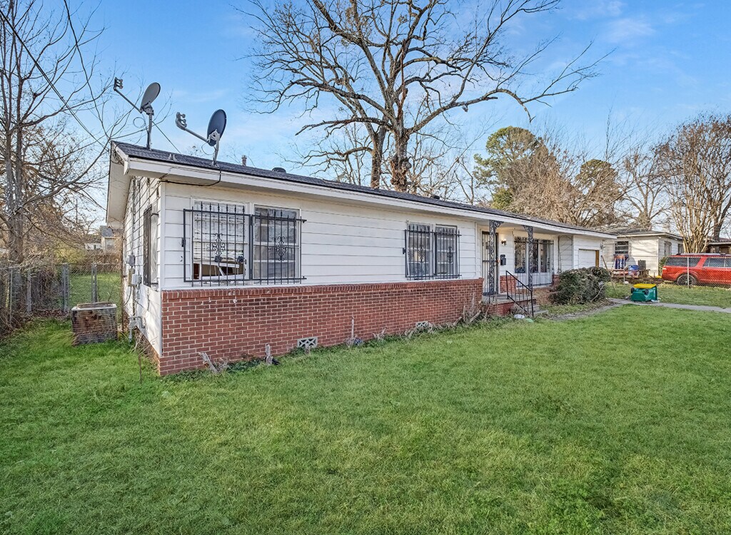 Welcome home to this charming single-story brick home in the heart of Texarkana! Situated on a spacious lot with a large backyard, this 3-bedroom, 1.5-bath property offers comfort, character, and plenty of natural light throughout. Inside, you’ll find beautiful wood-style flooring, fresh neutral tones, and ceiling fans in multiple rooms. The living area is bright and welcoming, with large windows that let in plenty of sunlight. One bedroom features warm wood-paneled walls for added character, while the additional bedrooms offer flexibility for family, guests, or a home office. The kitchen provides ample cabinet space and natural light, with easy access to the backyard. The bathrooms feature classic tile details and a convenient half bath for guests. Outside, enjoy a generous yard — perfect for entertaining, pets, or relaxing evenings outdoors. The brick exterior offers timeless curb appeal, and the driveway provides off-street parking. Conveniently located near schools, shopping, and local amenities, this home is a fantastic opportunity for homeowners or investors alike. Schedule your showing today!