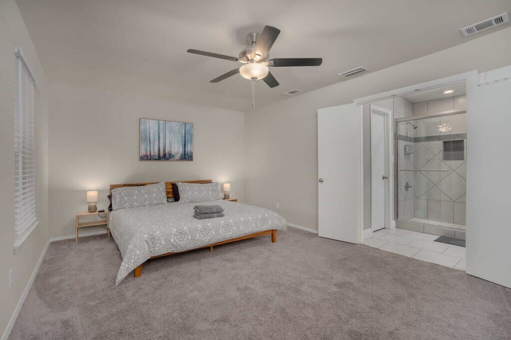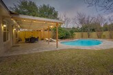 Wow! That’s what you’re going to say when you see this amazing vacation home. This spacious property has everything you need for a comfortable and memorable stay. With a sleek and modern design, tasteful décor, and comfortable furnishings, this place is just a short drive away from all the best attractions and amenities the city has to offer. The home features 5 bedrooms that can sleep up to 20 guests, 2.5 bathrooms, a fully equipped chef’s kitchen, a spacious backyard with a patio, a swimming pool, and free parking and laundry facilities. Step inside and be greeted by sleek and modern design, with tasteful decor and comfortable furnishings throughout. The large living area is perfect for gathering with friends and family, while the fully equipped kitchen has everything you need to cook up a storm. The real highlight of this property is the backyard. Lounge on the patio and soak up the sun or take a dip in the sparkling pool and cool off on a hot day. The home caters to both short-term and medium-term stays, making it an excellent choice for corporate housing needs. Whether you find yourself temporarily displaced from your home or require accommodations for your team during an extended project in our area, we provide a welcoming and comfortable "home away from home" experience. Free parking is available to all guests in the garage or on the private back driveway. If additional parking is needed, feel free to park on the neighborhood streets as well. The laundry room is fully equipped with a washer and dryer should you need to refresh your clothing during your stay. Pets are welcome with a non-refundable pet fee of $150 per pet with a maximum of 2 pets per stay. An additional nightly rate applies for more than 6 guests, with a $29/night fee for each additional guest. Come experience the best of Dallas. A bustling cosmopolitan known for sports, history, BBQ, and frozen margaritas, Dallas is home to more than a dozen neighborhoods and districts that each have their own distinct vibe and attractions. From spectacular museums and performing arts venues in the Arts District to the buzzing nightlife of live music and lively bars, there’s something for everyone here in Dallas. Attractions you won’t want to miss include White Rock Lake Park, Children’s Aquarium Dallas at Fair Park, Deep Ellum, and the Perot Museum of Nature and Science. Smoking of any type is not allowed and violations are subject to a $450 fine plus the cost to clean, deodorize, and repair damages. Check-in is at 4pm and checkout is at 10am. No parties or events are allowed. Pets should be discussed in advance; only house-trained pets are allowed and they must be kept off beds and furniture. Pet cleaning fees apply. A noise alert device is installed to monitor noise levels and ensure compliance with local noise ordinances and occupancy regulations. The fireplace is gas operated and should only be used if you are familiar with its operation. It must not be left unattended. Towels are provided, but guests are encouraged to bring their own pool towels. Registration Number: 493852 [SI]