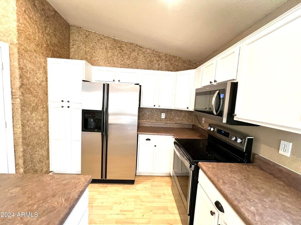 Clean and Ready to Move in Now! Single level Mesa home in Meridian Pointe. 3 bedrooms plus an office and 2 full bathrooms. Low maintenance desert front yard landscaping w/ private backyard with covered patio. Functional open floorplan features bright natural light & airy vaulted ceilings. Kitchen w/ ample cabinets + pantry for storage and island. Kitchen overlooks dining space,living room,and family room,perfect for entertaining! Spacious master suite offers walk-in closet,dual vanity,and step-in shower. Professionally Managed and Maintained. Renters Insurance is required.