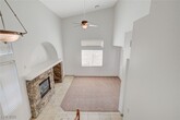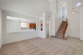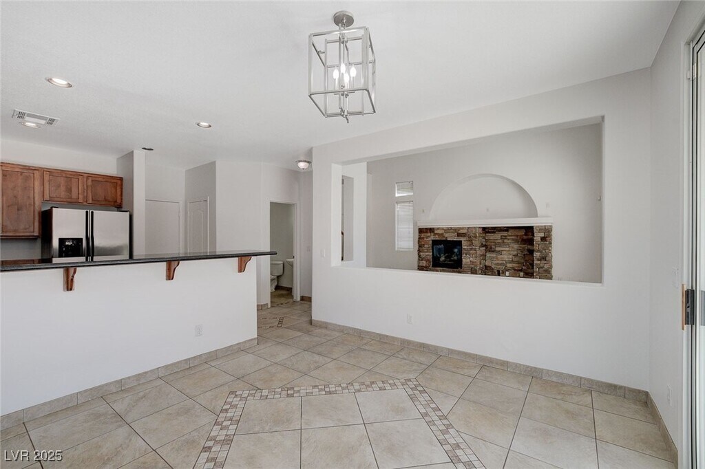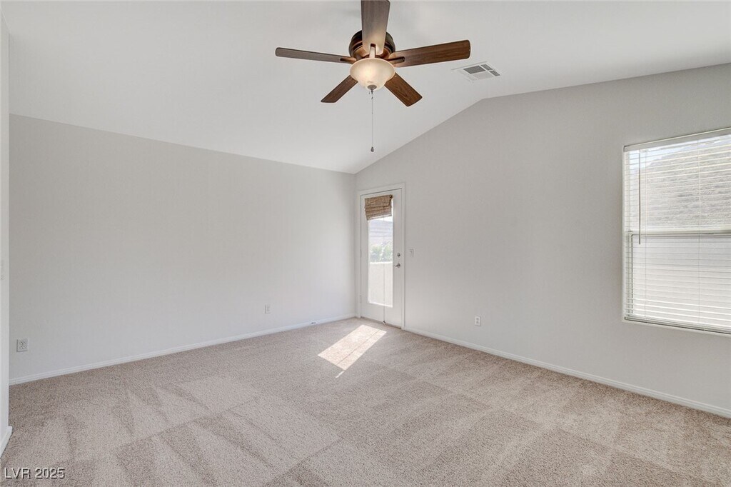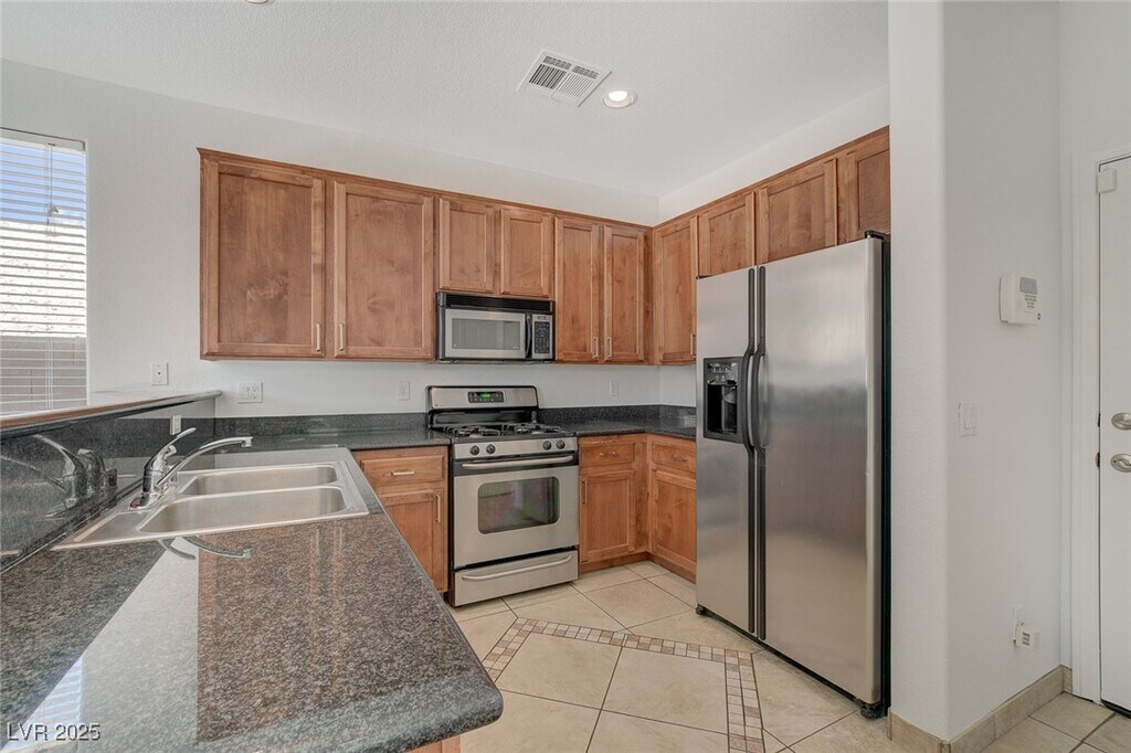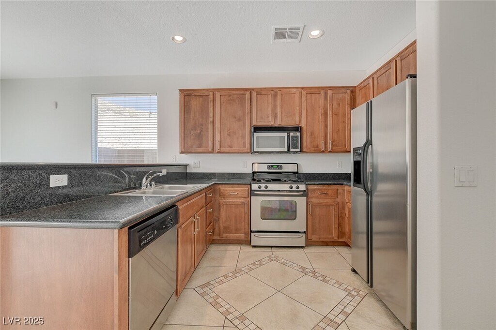 NEW carpet, fresh paint! Super clean 3 bedroom home in the heart of Southern Highlands! This property sits at the corner with a spacious backyard designed with low maintenance desert landscaping and firepit. Stainless appliances and full-size washer and dryer included. Primary bedroom has a walk out balcony, cozy fireplace and breakfast bar in the kitchen