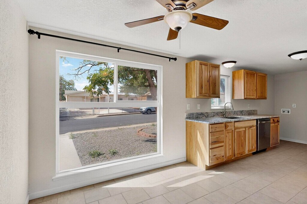 Mid Century Modern NE 1348/sf home in NE Heights. Spacious Living, ceramic tile floors, Saltillo tile too! Country Kitchen, three bedrooms and two living spaces. No Smoking, Small we’ll behaved approved pets negotiable. Tenants pay all utilities and renters insurance. To schedule showing and for acceptable application go to link to Virtual tour: