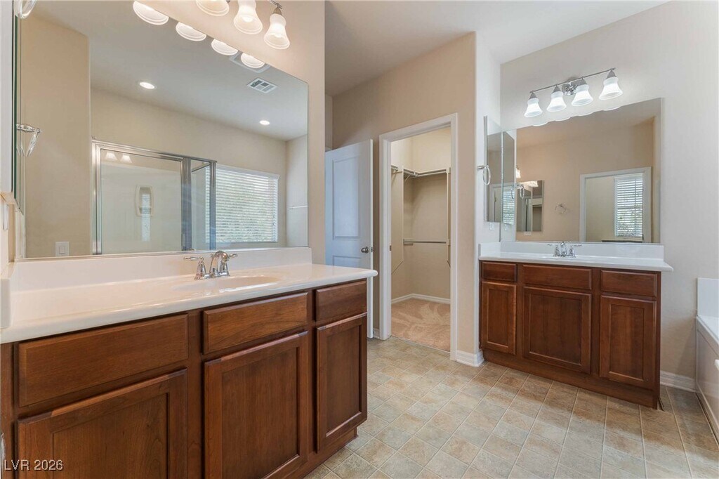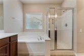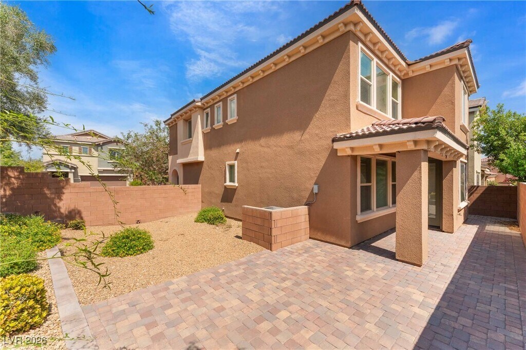 Summerlin Beauty! This stunning home features beautiful tile flooring throughout the open floor plan, a modern kitchen with custom cabinets, granite countertops, stainless steel appliances, a convenient island, and a pantry. Upstairs, a spacious loft provides extra living space, while the large master bedroom includes a walk-in closet and a master bath with dual sinks, a walk-in shower, and a relaxing bathtub. The additional bedrooms offer plenty of space. The finished backyard, designed for minimal upkeep, boasts desert landscaping and pavers. A 2-car garage with a tankless water heater completes this fantastic home.
