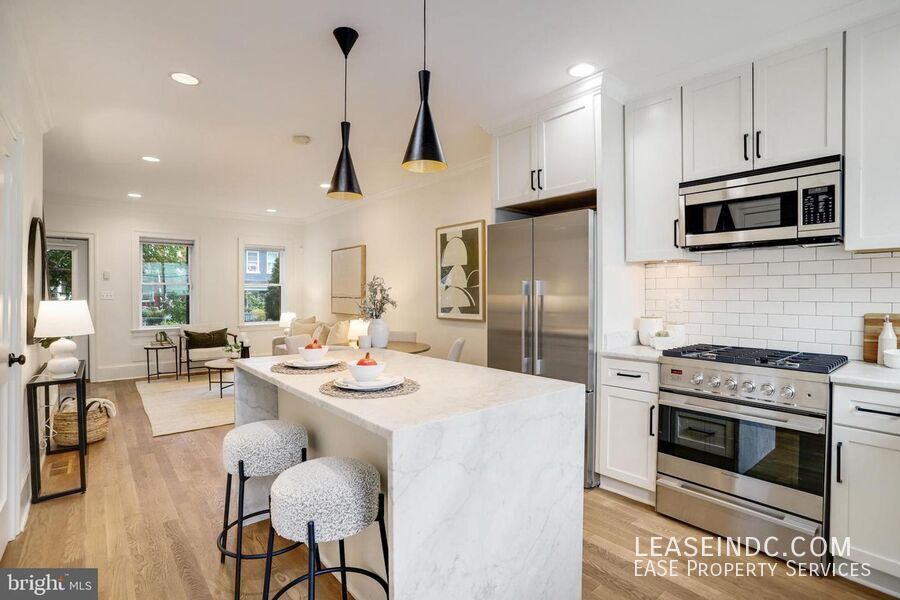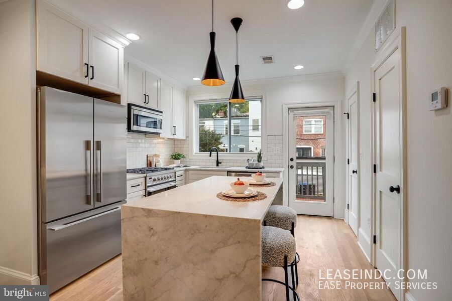 Welcome to 1122 Abbey Place, a stunning three-bedroom, two-and-a-half-bath home with off-street parking that has been completely rebuilt from the ground up. Every detail has been thoughtfully crafted with high-end fixtures, designer finishes, and modern functionality throughout. The result is a home that feels brand new yet fits seamlessly into its historic surroundings. With an unbeatable location and top-tier craftsmanship, this one is a must-see! Home Features: Completely gut-renovated in 2018 Beautiful hardwood floors throughout main and upper levels Open concept living/dining room Gourmet kitchen with marble countertops, high-end stainless steel appliances and large island with bar seating Deck off of kitchen which leads to rear patio Powder room on main level Second level leads to the primary bedroom towards front of home Ensuite primary bathroom features a spacious walk-in shower with dual heads and a dual vanity Good sized second bedroom towards back of home Fully finished basement with wet bar, perfect as an in-law suite, additional living room, play room and more Third bedroom and additional full bathroom on basement level Washer/Dryer on second floor Parking: Private off street parking for one car behind house. Utilities: Tenants are responsible for gas, water and electric. Lease Terms: Available immediately. Minimum 12 month lease. Application fee is $35 and includes credit check. Pets considered on a case-by-case basis pending approval by Owner. Security deposit equal to one month's rent due upon lease signing. Location: Abbey Place is a quiet, one-way street just 1 ½ blocks to NoMa Metro Station and a ten minute walk to Union Station Metro Station. Just steps away from the many great restaurants and shopping at Union Market including St. Anselm, El Presidente, O-Ku, Yellow, La' Shukran and so much more. A quick walk to both Whole Foods on H Street and Trader Joes in Union Market. Perfect location for Capitol Hill commuters as well.