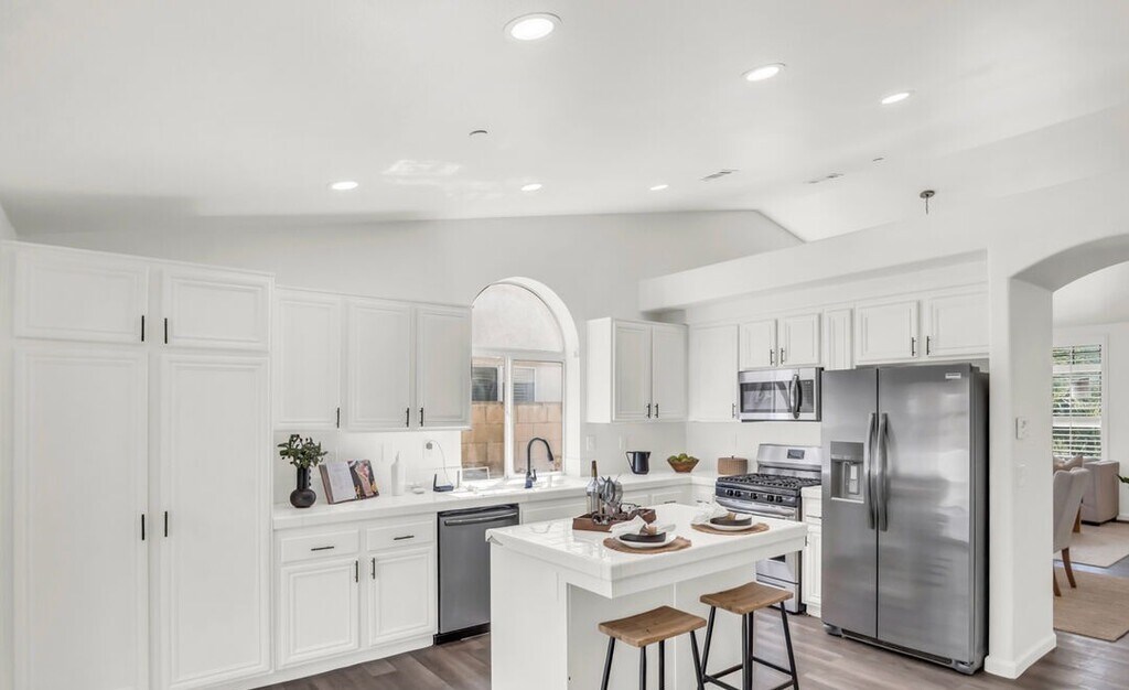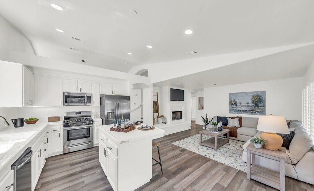 Experience effortless elegance and modern comfort in this beautifully renovated 4-bedroom, 3-bath home offering approximately 1,900 sq ft of thoughtfully designed living space in desirable North Redlands.Vibrant landscaping welcomes you inside, where vaulted ceilings, warm wood-style flooring, plantation shutters, and graceful archways create a bright, inviting atmosphere. The open-concept living and dining areas flow seamlessly, while the cozy family area features a striking fireplace and sliding glass doors opening to a covered patio—perfect for weekend BBQs and relaxed outdoor living.Interior HighlightsNewly renovated throughoutVaulted ceilings with abundant natural lightOpen-concept living & dining spacesFamily room with fireplace & patio accessMain-level bedroom + full bath (ideal for guests or home office)Kitchen FeaturesStainless steel appliancesTiled countertopsCenter island for prep & casual diningRecessed lighting & ample cabinetryUpstairs RetreatSerene primary suite with walk-in closetEnsuite bath with soaking tubTwo additional bedrooms & full bathAdditional PerksAttached 3-car garageCovered patio for outdoor entertainingFunctional, flexible layout ideal for modern livingPrime LocationClose to shopping & diningNear the University of RedlandsEasy access to I-10 & 210 FreewaysBeautifully updated, spacious, and move-in ready—this North Redlands home delivers comfort, style, and convenience in one exceptional package.