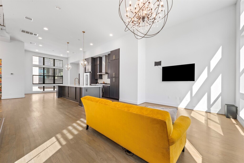Experience luxury living in this stunning four-story corner townhome featuring 3 spacious bedrooms,each with its own private ensuite. Gorgeous light fixtures and elegant chandeliers enhance the natural light that pours through expansive picture windows. Enjoy breathtaking skyline views from your private rooftop terrace — perfect for relaxing or entertaining. Located in a secure gated community with sidewalks ideal for evening strolls,walking your dog,or bike rides with the kids. A private green space sits at the heart of the community for added tranquility,with additional guest parking for convenience. All-neutral,sophisticated finishes throughout. Refrigerator,washer,and dryer included. A perfect blend of comfort,style,and elegance. MLS# 97082430