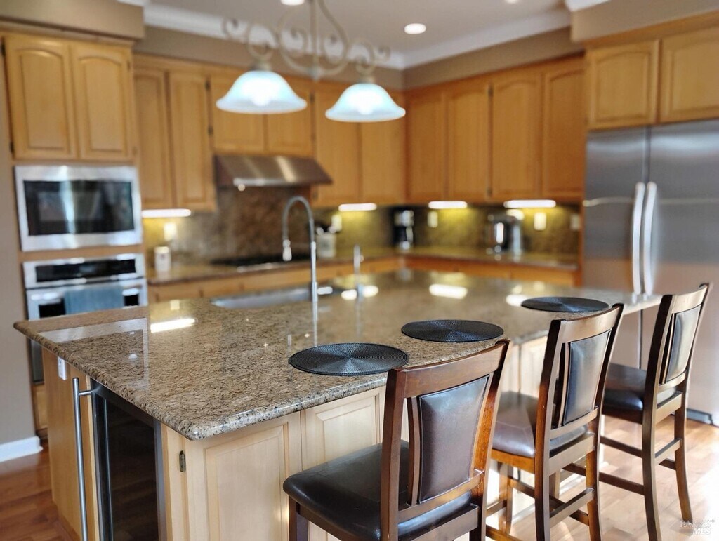 This beautiful home offers a large upstairs primary suite along with a full bedroom and ensuite on the first floorperfect for guests. The kitchen has been updated with granite countertops and stainless-steel appliances. The spacious backyard is built for relaxing or entertaining, featuring an outdoor kitchen, built-in grill, and peaceful waterfall. New fencing and low-maintenance, mature front landscaping complete the outdoor spaces. Walk to Russian River Brewery, Windsor Golf Course, and Wilson Ranch Soccer Park. Just minutes to Windsor Town Green, Windsor High School, and Sonoma County Airport. The neighborhood includes walking trails and a large park with a playground, picnic tables, and basketball courts! MLS#326009770