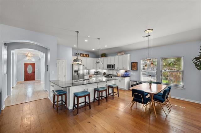 Live like you’re on vacation in this stunning single-story, 4 bedroom, 2 bath home with pool and spa. Featuring newly renovated bathrooms, upgrades throughout, stainless appliances, Electrolux gas cooking and solid stone counters, this magnificent family home offers both luxury and convenience. The open concept kitchen with oversized island makes preparing meals a delight whether you’re cooking for an intimate family dinner or celebrating a grand event for friends and neighbors. Separate dining room and a private office enables productivity for everyone while the master retreat is secluded from secondary bedrooms. Enjoy the covered shade patio, open pool deck, and a suite of mobile accessible smart home features that make living easy and comfortable. With internet, pool and lawn service all included, relax, and take a dip in the sparkling pool and spa, or soak up the views of the backyard oasis from central areas inside the home. Enjoy peace on the non-through street with gated private backyard and multi-car parking. Located nearby to highly sought-after Keller ISD schools and stadium, and within walking distance to restaurants, shops and bike hike trails, the home is arguably in one of the best locations in town. Refrigerator also included. Pets welcome