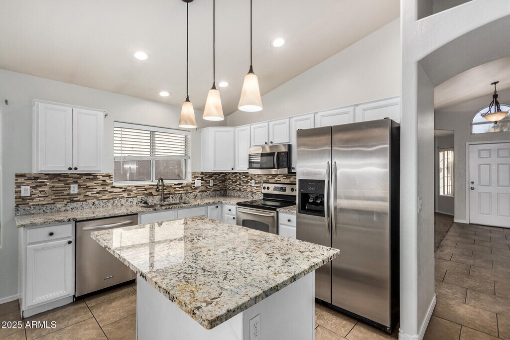 Discover the perfect blend of comfort and style in this hard-to-find 4-bedroom,single-level home with great curb appeal,featuring a green lawn and a red paver walkway. Located in a prime Chandler neighborhood with easy freeway access,this popular split floor plan boasts vaulted ceilings,and neutral finishes throughout. The kitchen is a chef's delight with a large island,under-cabinet lighting,stainless steel appliances,and a contemporary backsplash. The home also includes upgraded pendant lighting. The Jack and Jill guest bathroom features upgraded granite counters,updated fixtures,and a tile tub surround,while the master suite offers dual sinks,a private toilet room,and a walk-in closet. Additional highlights include an insulated garage door and a sparkling pool!