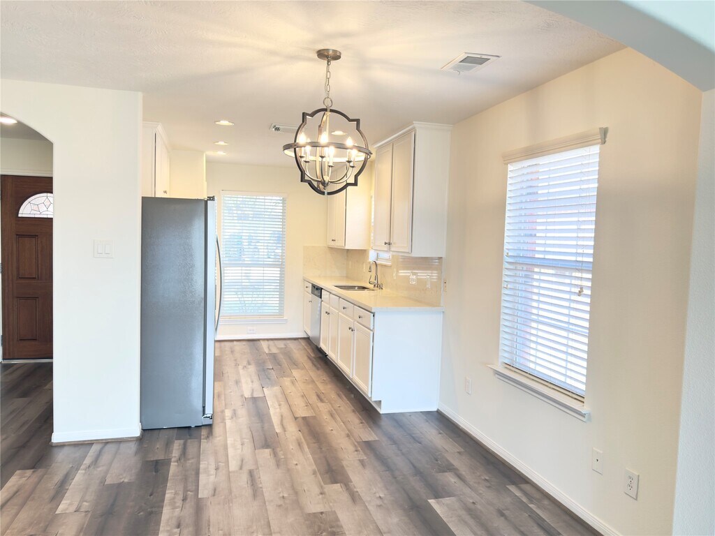 Absolutely stunning and move-in ready one-story home in Canyon Village at Westheimer Lakes. Recently refreshed and impeccably maintained,this home features brand-new stainless steel appliances,beautiful wood laminate flooring throughout,modern finishes,and an open-concept layout filled with natural light. Spacious primary suite offers double sinks and a separate shower. Enjoy a private fenced backyard with no back neighbors and clean,well-maintained walkways and exterior. Located in a highly desirable master-planned community with access to neighborhood amenities,parks,and convenient proximity to major highways,shopping,and dining. A must-see — ready for immediate move-in. MLS# 98749409