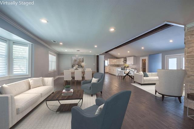 Bikers, joggers, and swimmers rejoice—this renovated home sits beside the Northaven Trail, linking East and West Preston Hollow, Moss Park, and White Rock Lake. Inside, vaulted ceilings and an open layout create a bright, welcoming space that seamlessly connects the kitchen, dining, and living areas. The spacious kitchen offers abundant storage and counter space, ideal for everyday living and entertaining. Step outside to a large backyard retreat featuring a deck for al fresco dining, a sparkling pool, and a pavilion with a louvered roof that lets you choose full sun or cool shade. A built-in gas grill makes hosting effortless. A versatile flex room includes shades that can block sunlight for the ultimate media experience or be opened to create a bright game room, private office, or additional living space. The spacious primary suite features a massive walk-in closet and a luxurious bath with dual sinks, walk-in shower, and soaking tub, while a second bedroom provides comfortable accommodations for guests or family. Very recent updates include new floors, countertops, and backsplash. Professionally managed by a licensed property management company for responsive service and peace of mind.