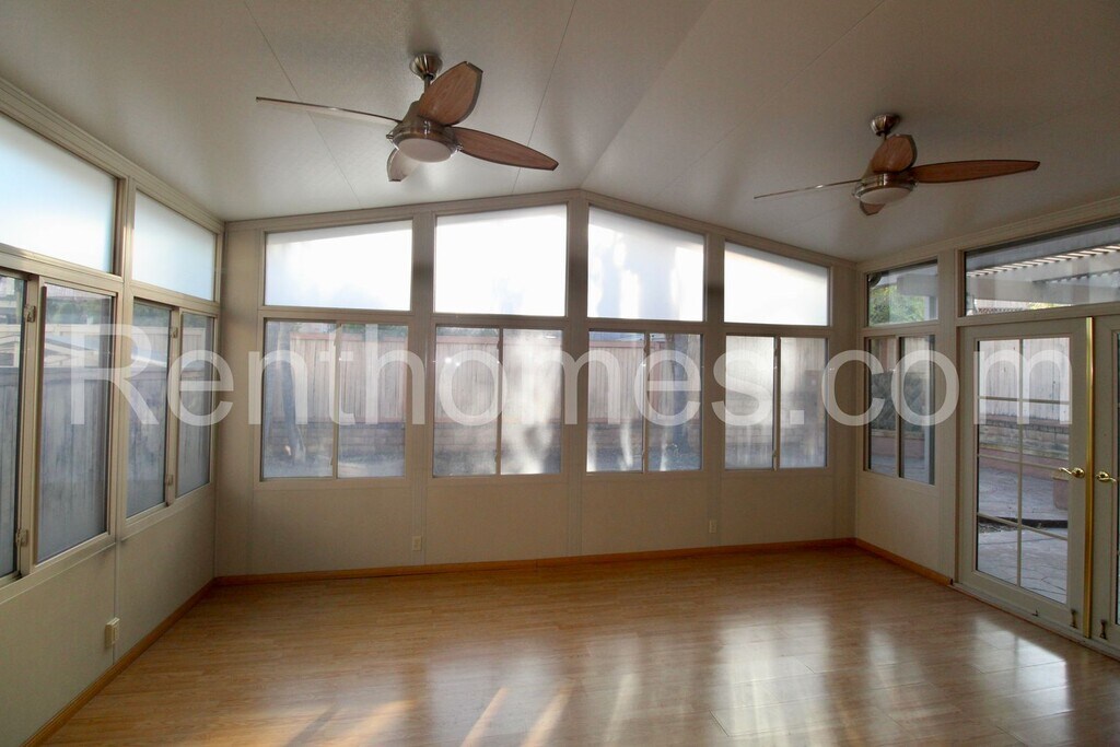 This spacious home is conveniently located near schools, shopping, community parks, entrance to the 15 freeway and the HOV lanes. This house boasts a modern feel with its solar panels, ensuring energy efficiency and cost savings. The attached 2 car garage with opener offers convenience and security for your vehicles. Step inside and be greeted by the elegant plantation shutters that adorn the windows, allowing for privacy and natural light. The wood floors in most rooms add a touch of warmth and sophistication, while the carpet and tile in some rooms provide comfort and durability. The granite counters in the kitchen are not only visually appealing but also practical for meal preparation. Enjoy your meals in the formal dining room or the cozy breakfast nook, perfect for intimate gatherings or family meals. The kitchen comes fully equipped with a refrigerator, dishwasher, microwave, and gas stove, making cooking a breeze. For added convenience, a full-size washer and dryer are included. A large California sun room with vaulted ceilings, two ceiling fans with light fixtures is perfect for enjoying the outdoors while protected from the weather. Stay comfortable year-round with the central air conditioning, and cozy up by the gas log fireplace during cooler evenings. The fenced rear yard offers privacy and a safe space for outdoor activities. If you are interested, please drive by the home to see if the location and neighborhood meet your needs, then call American Heritage Properties at and we will be happy to set an appointment to show you the home. To see our complete listings or to apply now visit our website at