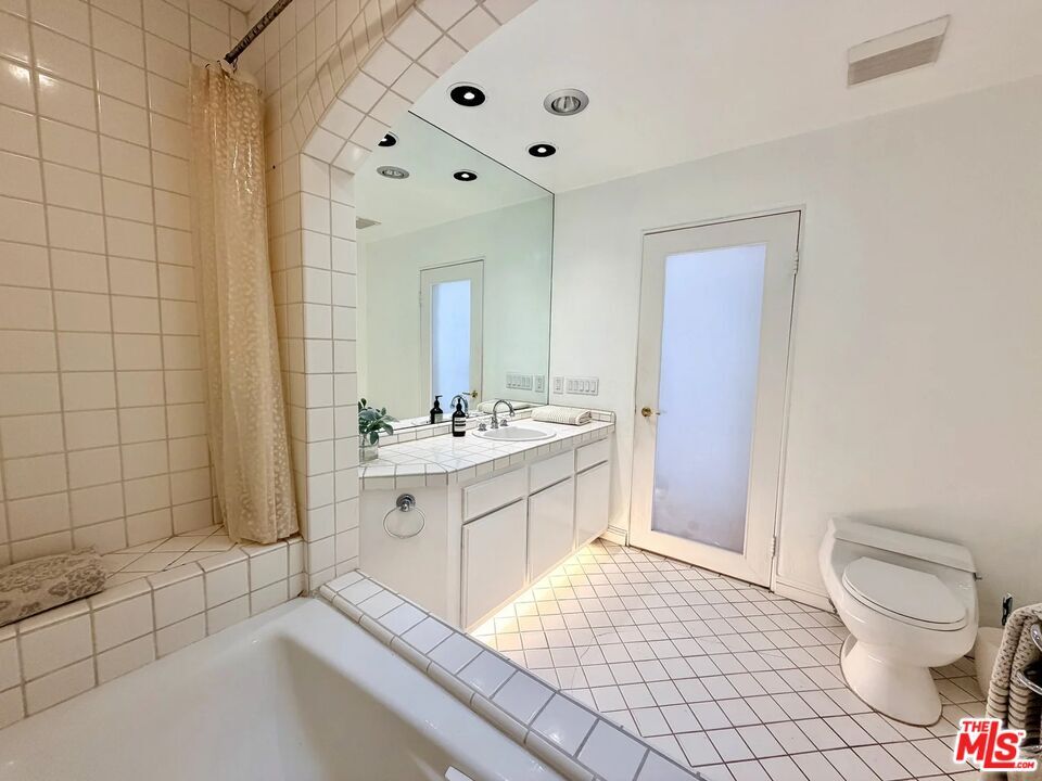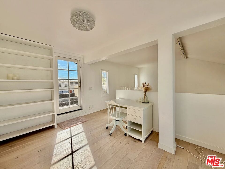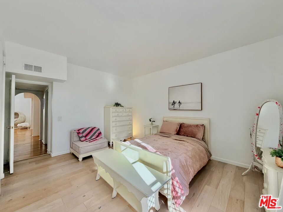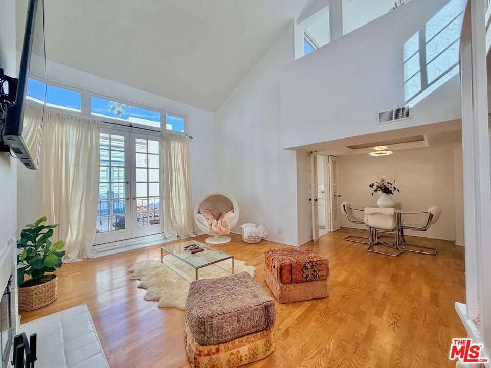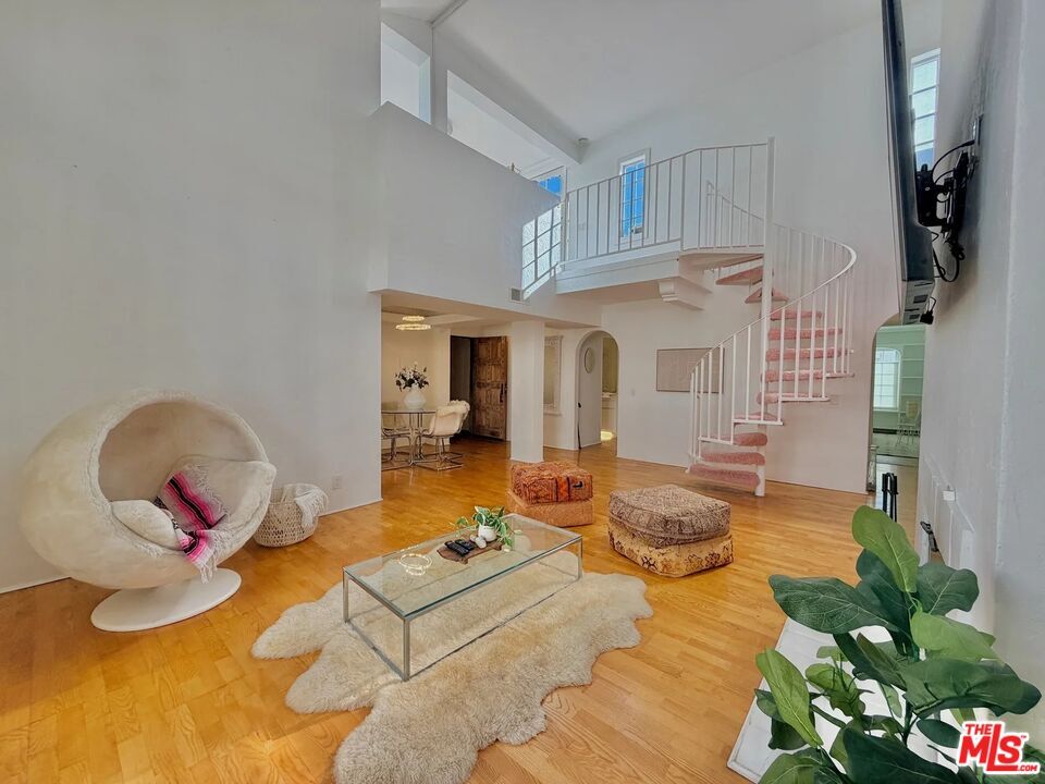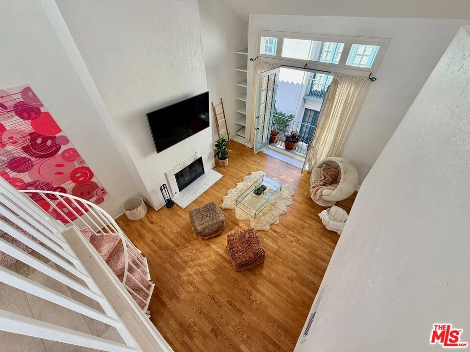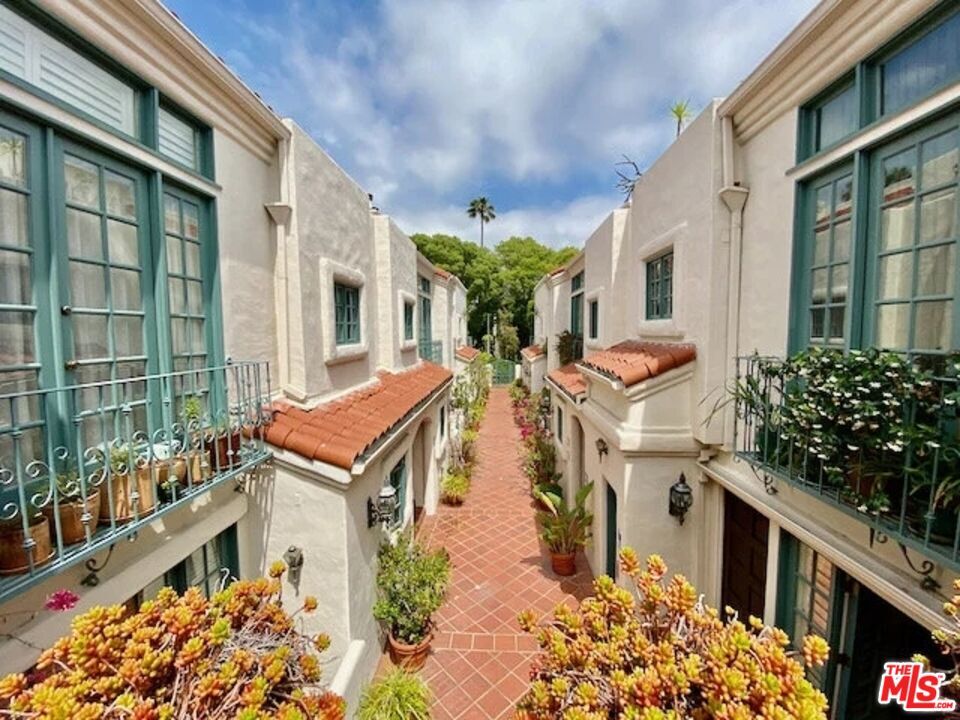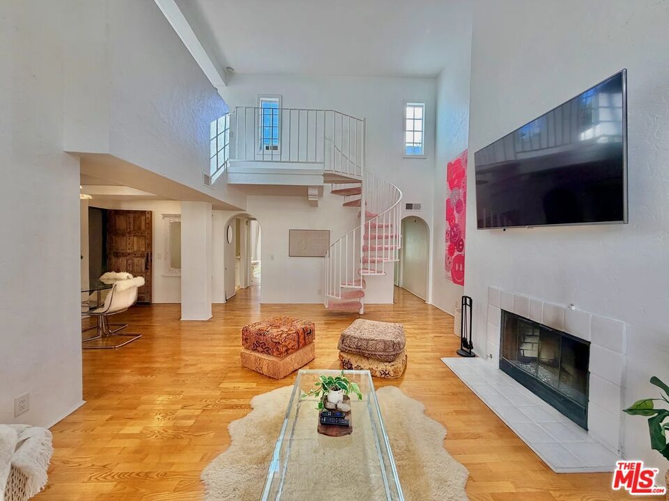 Rare, unique, award-winning, have all described the Villa Flores architecture surrounded by its prime West Hollywood location. The courtyard steeped in Spanish Mediterranean character leads you to the top floor two-story home that exudes the quality and influence of its surroundings. Twenty-foot ceilings, French doors and windows, bring natural light into the space continuously highlighting the textured walls, spiral stairs and fireplace. The master and guest bedroom boast private living areas with en-suite bathrooms and large closets. Up the wide spiral stairs leads you to the open loft/office/media room with two separate rooftop patios ideal for entertaining; one south facing, one north facing, showering you with blue sky, city lights, and views of the hills towering over the Sunset Strip. Taking advantage of this opportunity would be an understatement. Walk to shops, restaurants & groceries etc. Laundry in unit. 2 parking spots. Rooftop Deck. MLS# 26637809
